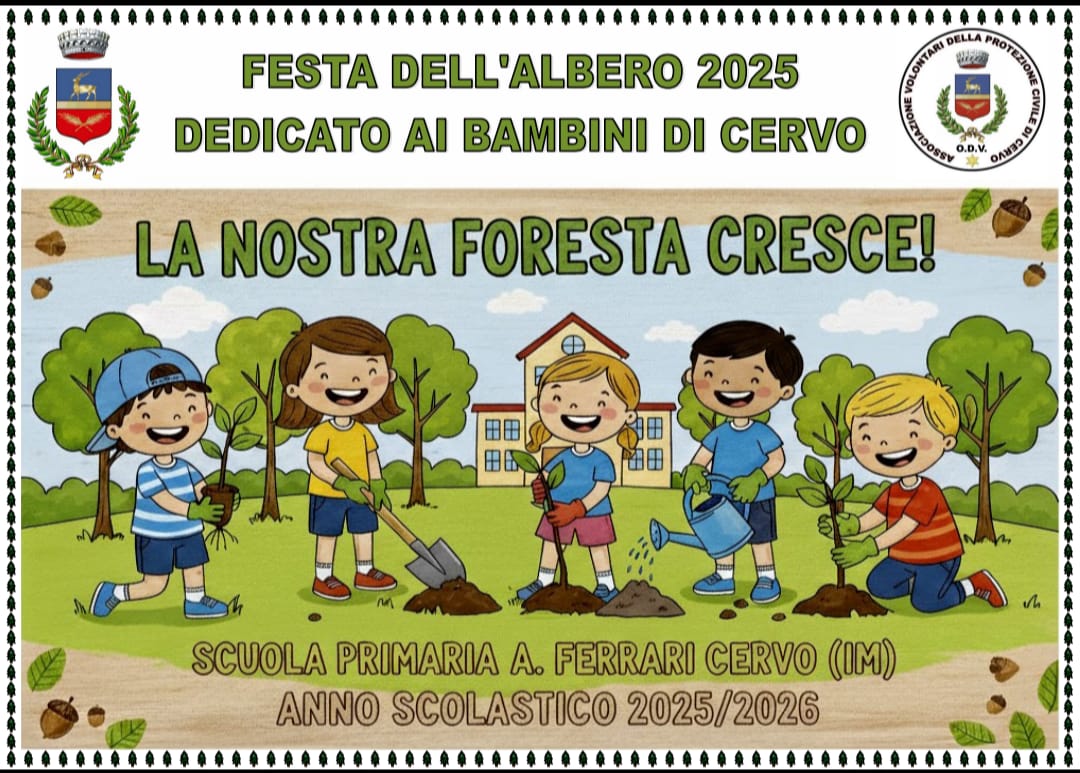 Si Ăš svolta questa mattina, 21 novembre, a Cervo la Festa Nazionale dell’Albero, un’iniziativa organizzata dalla Protezione Civile di Cervo in collaborazione con il Comune e la scuola primaria “A. Ferrari”.
