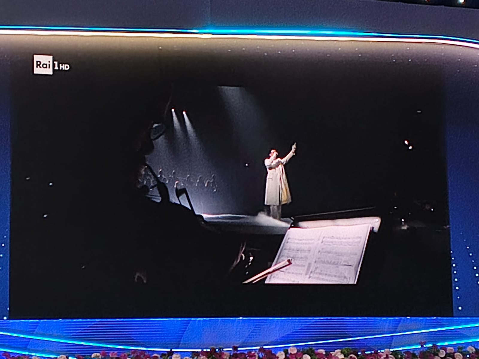 Momento di raccoglimento sul palco del Teatro Ariston con l’omaggio di Achille Lauro alle vittime della strage di Crans-Montana.