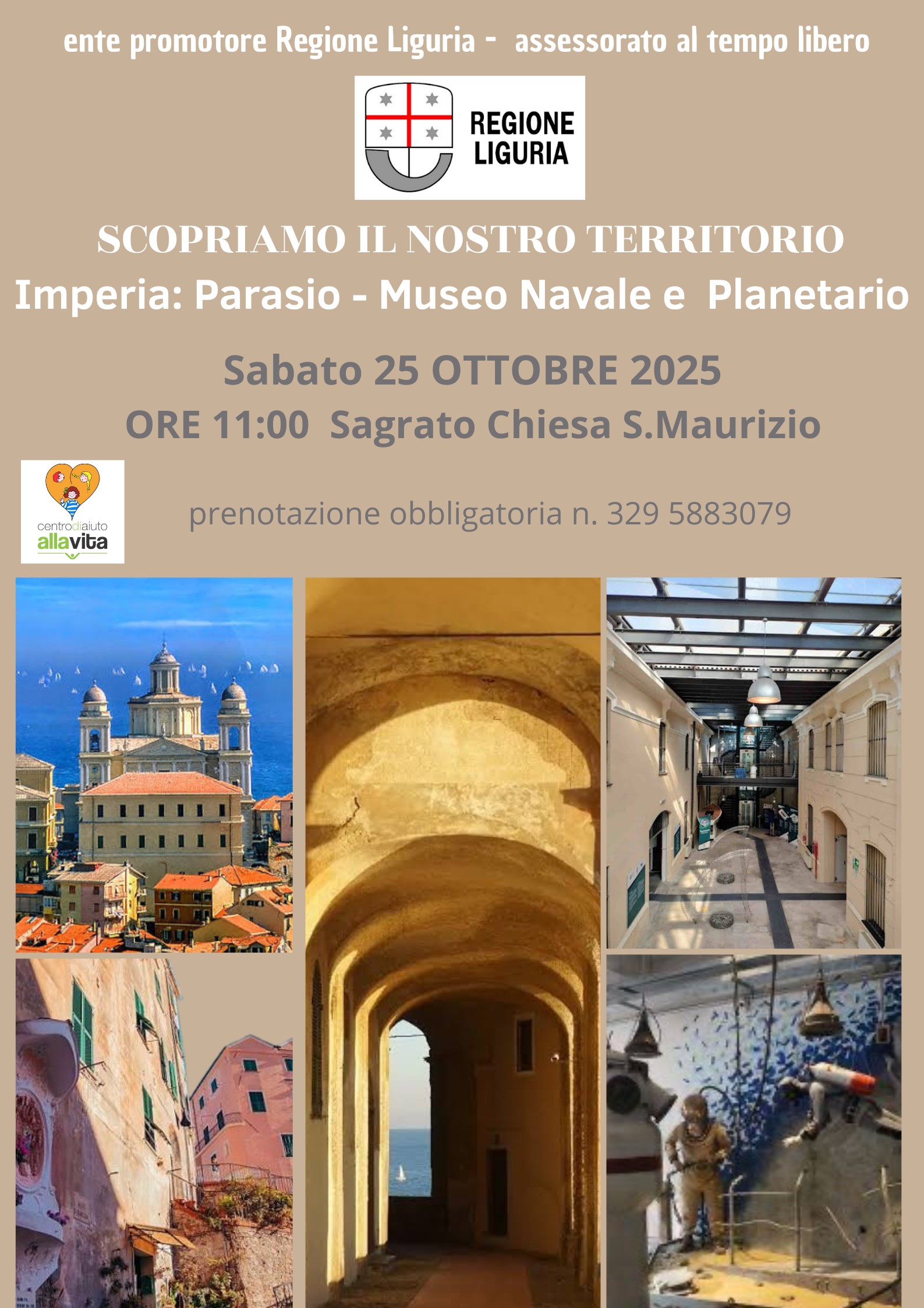 L’incontro sarà dedicato alla scoperta della città di Imperia e si aprirà con un approfondimento sulla storia del Parasio, cuore antico e suggestivo della città. A seguire, i partecipanti visiteranno il Museo Navale e il Planetario, per un percorso che unisce cultura, conoscenza e valorizzazione del patrimonio locale.