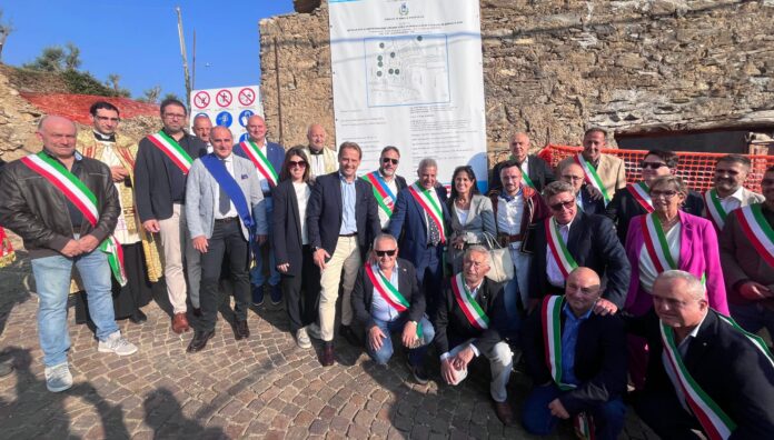 Duplice, importante intervento regionale ad Aquila dâArroscia. Questo pomeriggio il vicepresidente della Regione Liguria con delega allâAgricoltura e allâEntroterra Alessandro Piana e lâassessore all’Urbanistica, Edilizia e Rigenerazione urbana Marco Scajola, insieme al sindaco Tullio Cha, agli amministratori locali e alla cittadinanza hanno prima inaugurato la nuova strada carrabile che collega borgata Canto al cimitero comunale e, a seguire, dato avvio al cantiere di riqualificazione di borgata Aira.