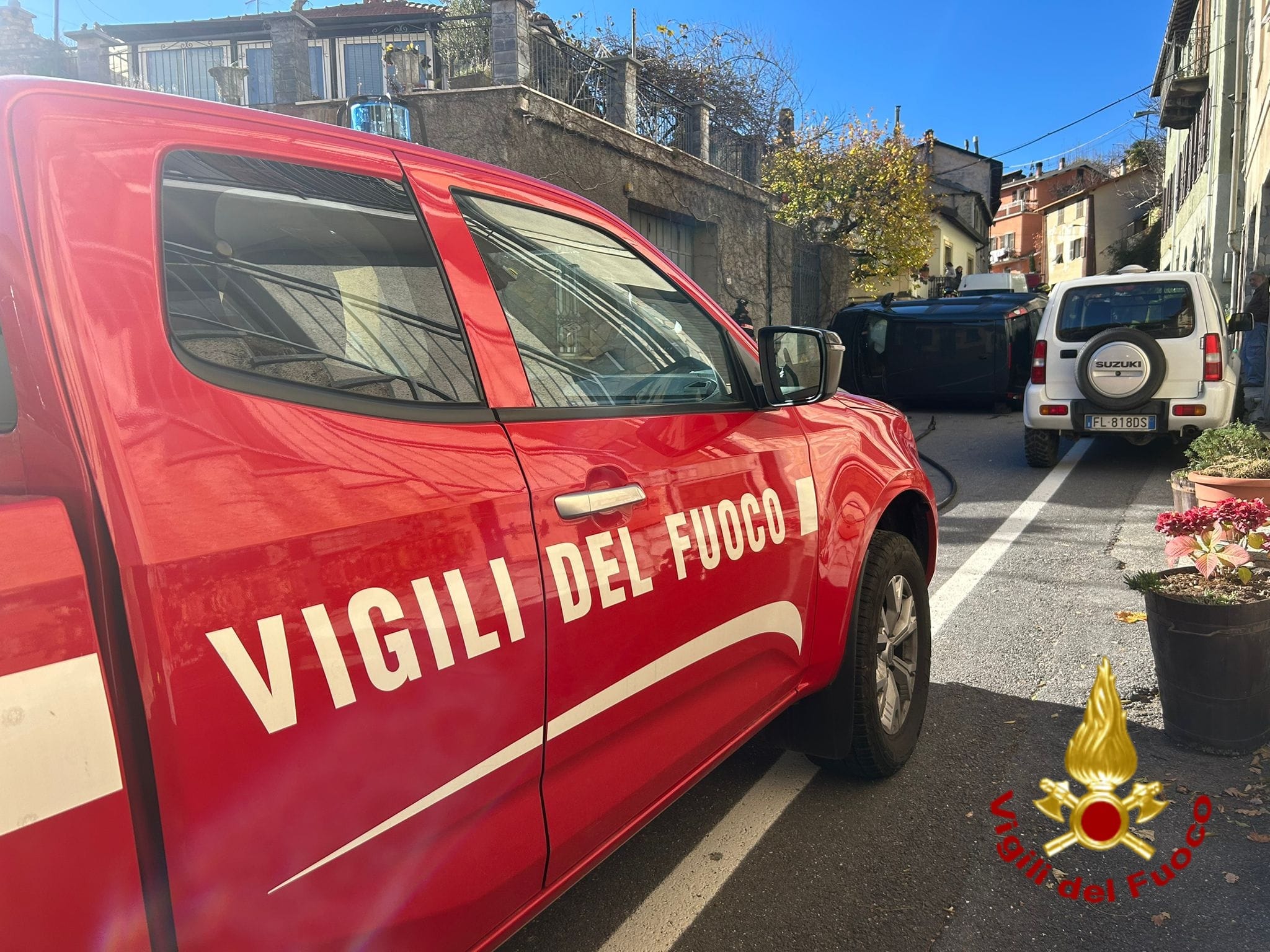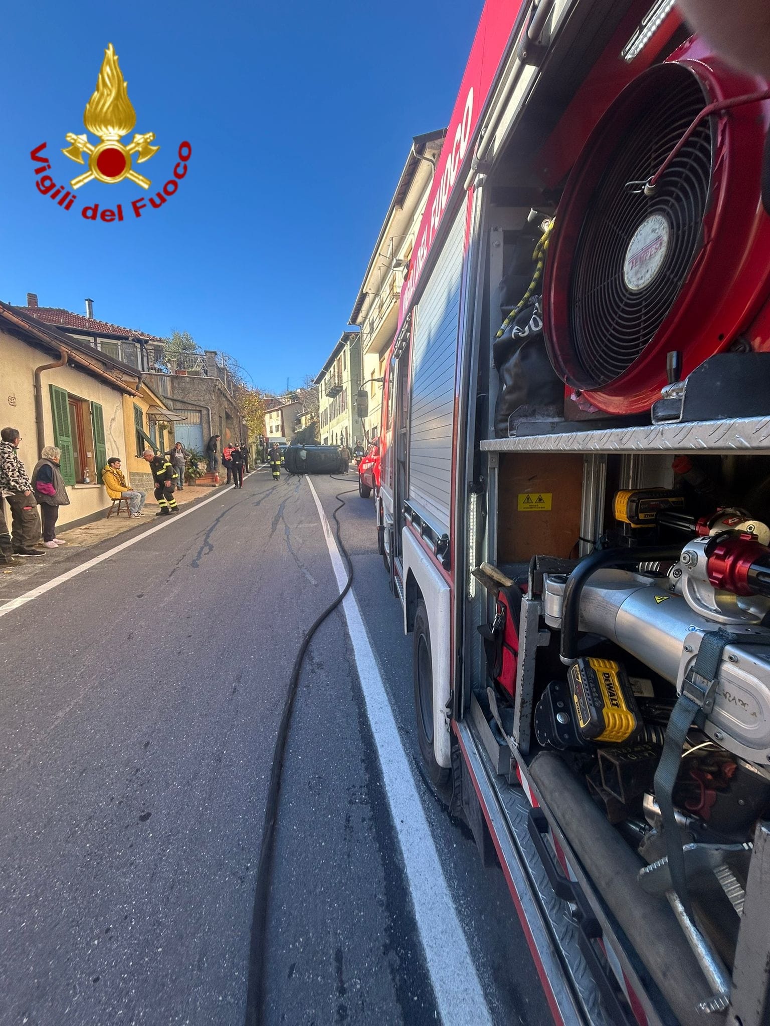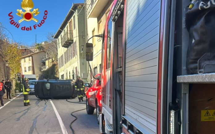 Intervento dei Vigili del Fuoco del Presidio Rurale di Pieve di Teco poco dopo le 12 a Ponti di Pornassio per un incidente stradale che ha coinvolto una sola vettura, capottata sulla sede stradale.