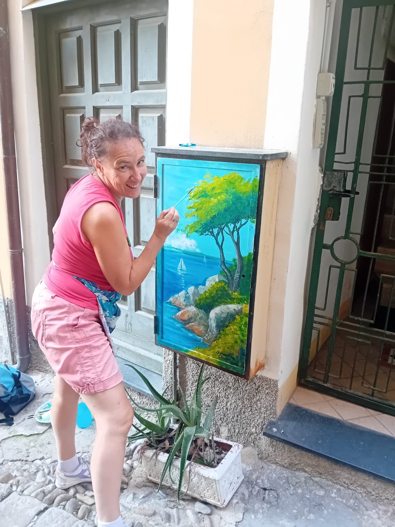 “Una mattina prendevo il caffè qui al bar nel mio angolo, avevamo già parlato che sarebbe stato bello pitturare le antine dei contatori”, ha spiegato Barbara Rotella, una delle curatrici del progetto, ripercorrendone le origini. “Io parto sempre con entusiasmo, ma più che altro se trovo davanti a me persone con lo stesso entusiasmo. Per caso vedo Marina Fenech e le chiedo ‘Cosa ne diresti di pitturarmi un’antina?’ e lei con un bel sorriso ha detto ‘Una bella iniziativa, vi aiuterò’. E da lì sono partita alla grande.”