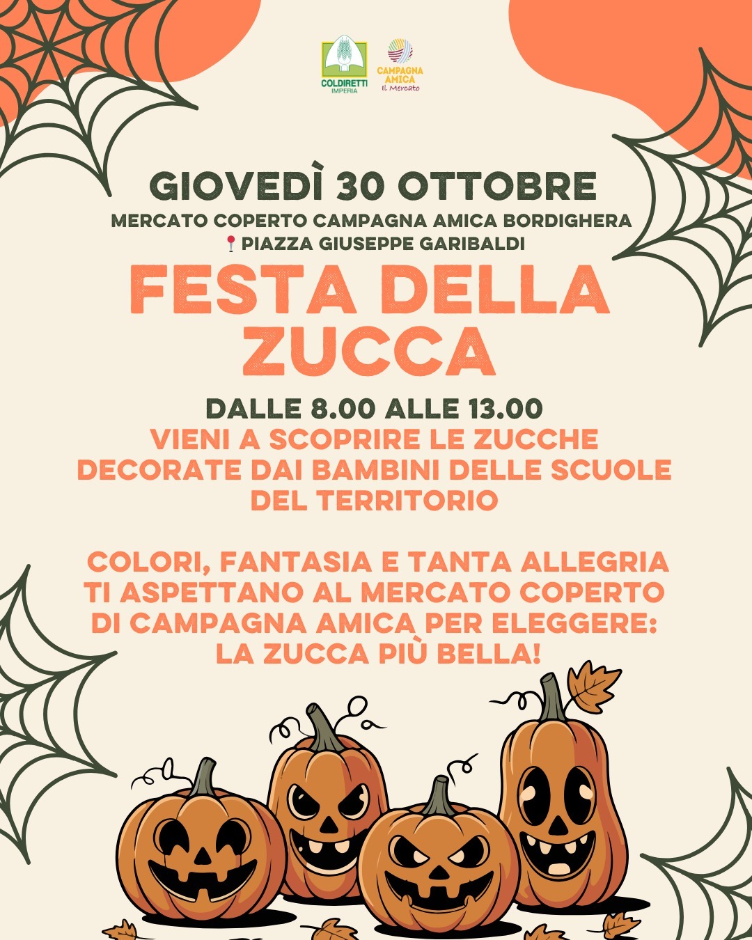 Giovedì 30 ottobre, dalle 9:00 alle 12:30, il Mercato Coperto di Campagna Amica in Piazza Garibaldi a Bordighera si trasformerà in un piccolo mondo incantato per celebrare Halloween in versione contadina, tra colori d’autunno, creatività e prodotti genuini del territorio.