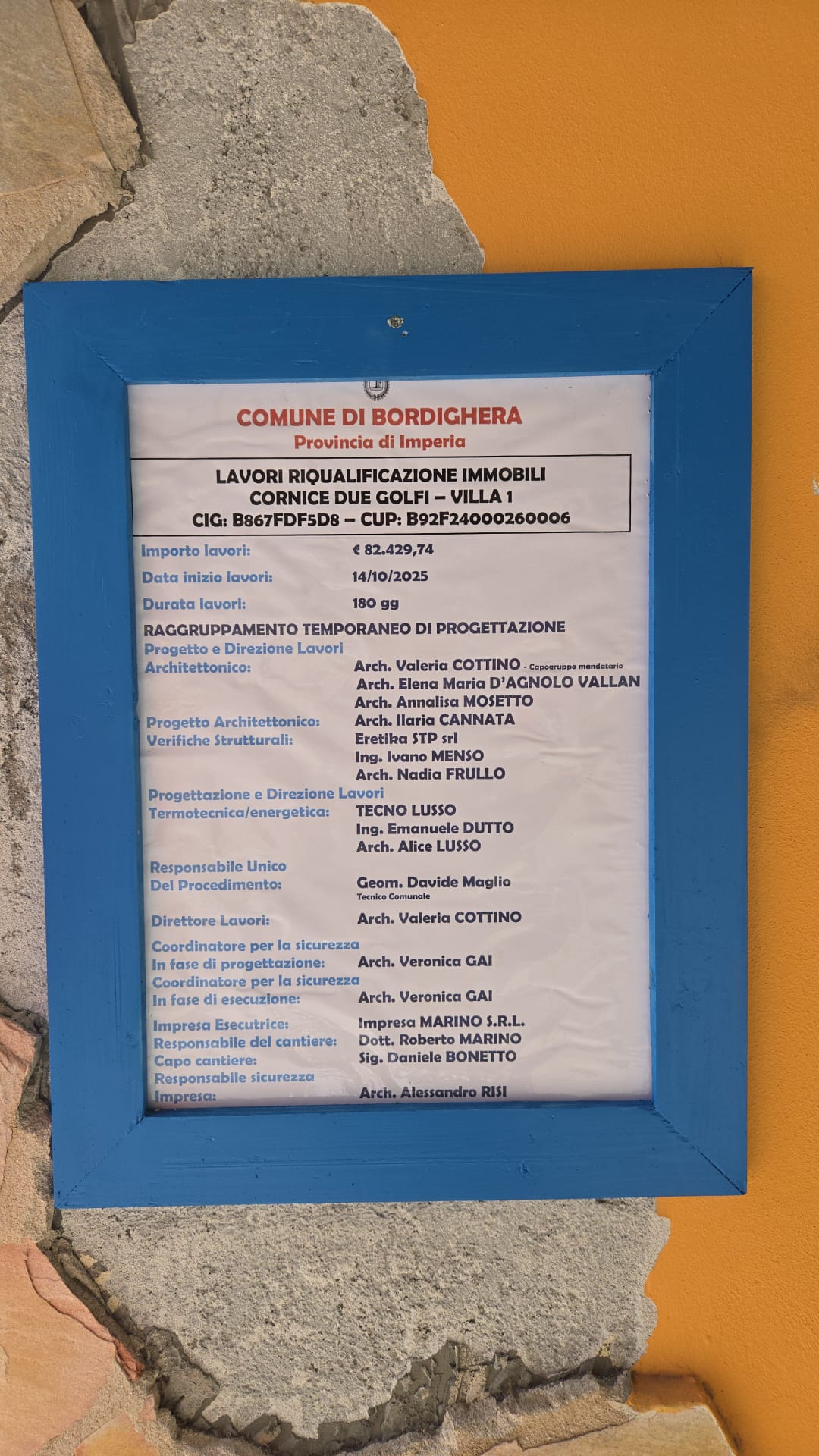 I lavori per la prima villa, denominata “Stecca“, seguiti dagli architetti di Architettura Senza Frontiere, sono stati assegnati alla direzione del capogruppo mandatario Valeria Cottino e avranno una durata stimata di 180 giorni per un costo totale di oltre € 82.000.
