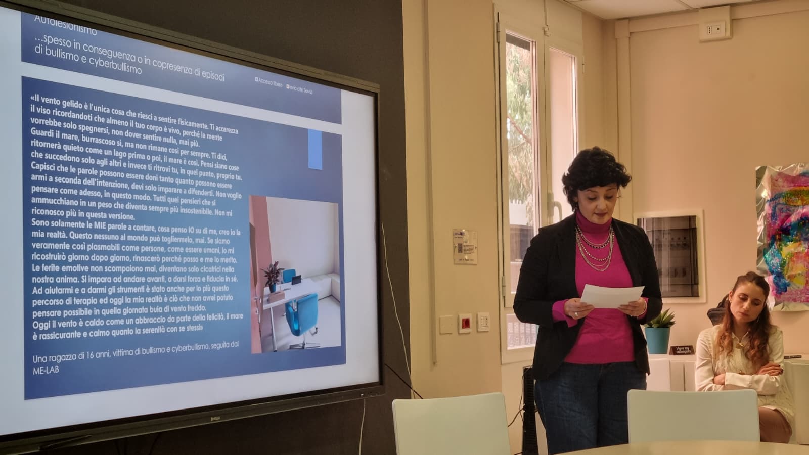 Il progetto di Media Education che il servizio porta avanti è rivolto alla scuola secondaria di primo grado. Gli istituti della provincia possono sceglierlo attingendo all’offerta formativa regionale. Attraverso attività laboratoriali che si articolano in stanze tematiche, cercando di favorire nei ragazzi la consapevolezza nell’uso dei dispositivi digitali. Si osserva, come fenomeno contemporaneo, l’influenza dei social media nelle dinamiche relazionali tra adolescenti e si considera che, se da una parte questi strumenti costituiscono validissimi aiuti nell’interazione, dall’altra possono diventare potenti mezzi per veicolare messaggi negativi e anche pericolosi. Al Me-Lab i ragazzi accedono alla “Stanza delle storie”, in cui gli studenti riflettono, insieme ai loro compagni e sotto la guida di un operatore, sulle conseguenze di ciò che pubblicano sul web e di come presentano se stessi. In questa stanza si svolge un’attività di prevenzione che riguarda il bullismo e cyberbullismo. Attraverso le storie che scaturiscono da un’immagine che i ragazzi condividono nel laboratorio, si avviano racconti che a volte rivelano esperienze legate all’età e a volte anche momenti difficili.