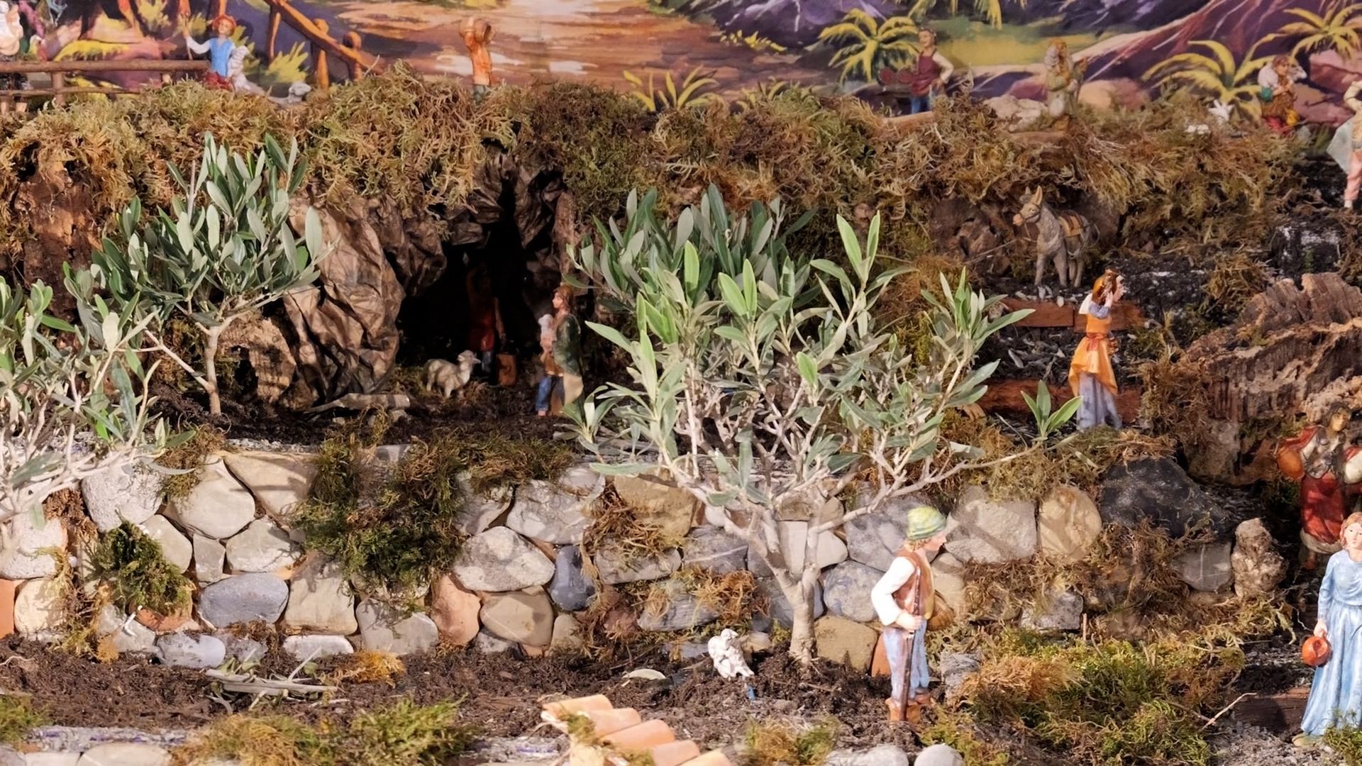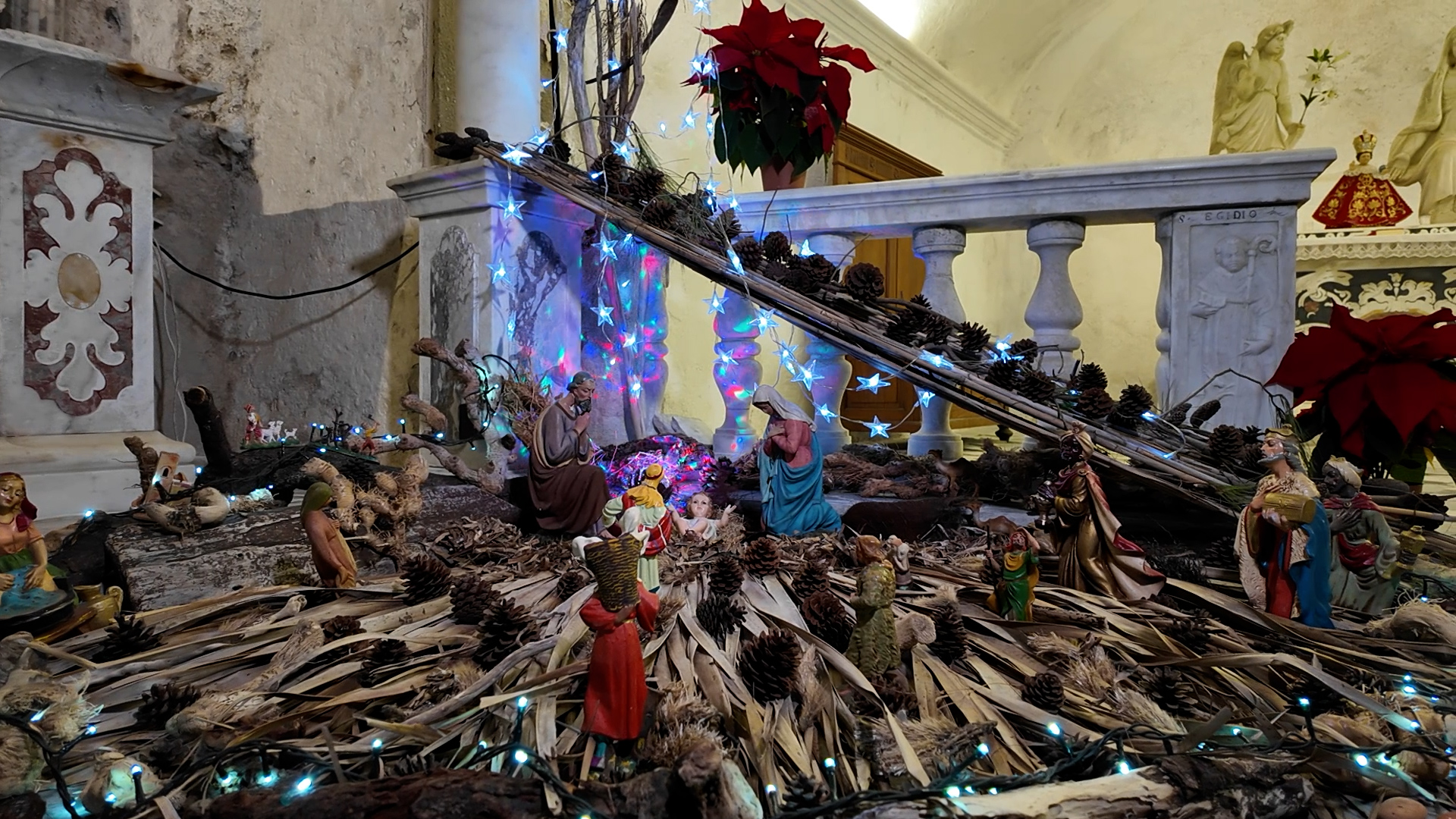 La Natività è costruita con rami di ulivo, radici, pietre e altri materiali reperibili in natura. Non mancano l’acqua e il suo ruscello, dettagli che conferiscono all’ambientazione un aspetto realistico e coinvolgente per i visitatori. “Tutto è pensato per rendere l’ambiente il più veritiero possibile durante il periodo di Natale”, aggiunge il diacono.