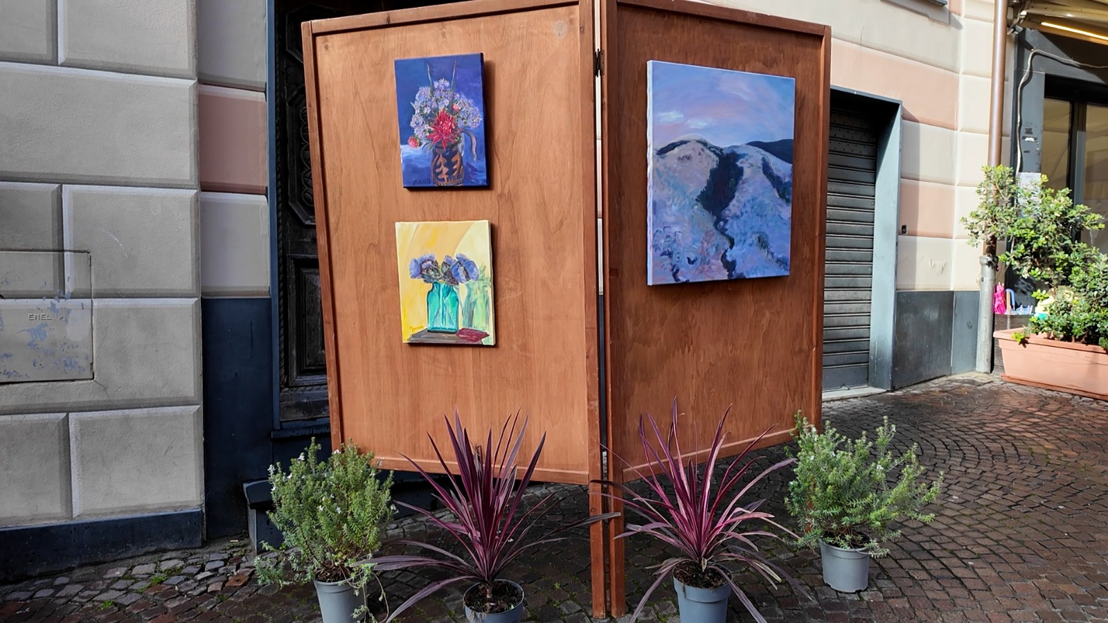 “Abbiamo voluto abbinare le composizioni dei nostri artisti con quadri appunto dedicati a questo tema”, ha spiegato l’assessore alle Manifestazioni Rosella Gastaldo. “Conosco l’artista Zano e quest’anno ha fatto una collezione dedicata ai fiori, quindi l’ho contattata per abbellire un po’ i nostri carrugi”.