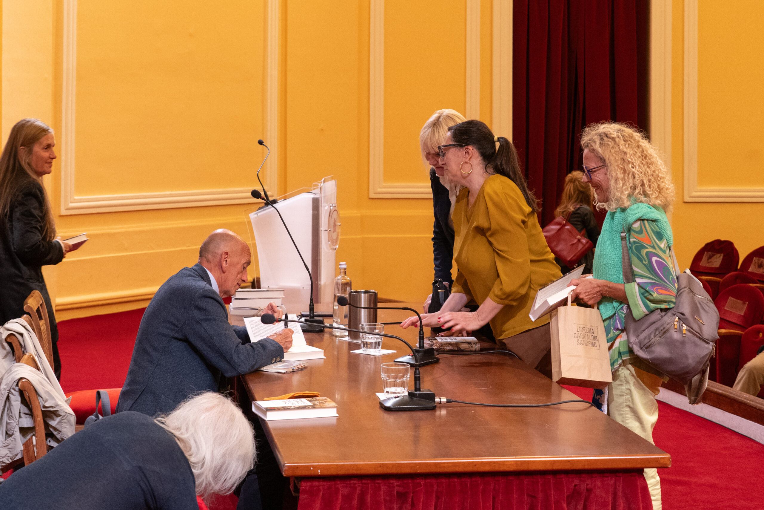 Hanno portato il saluto la componente del consiglio di amministrazione del Casinò, dott.ssa Sonia Balestra, e la consigliera comunale Desiré Negri. Ha dialogato con l’autore Marzia Taruffi e Marina Moretti, per l’associazione della rete “Ottobre di Pace”.