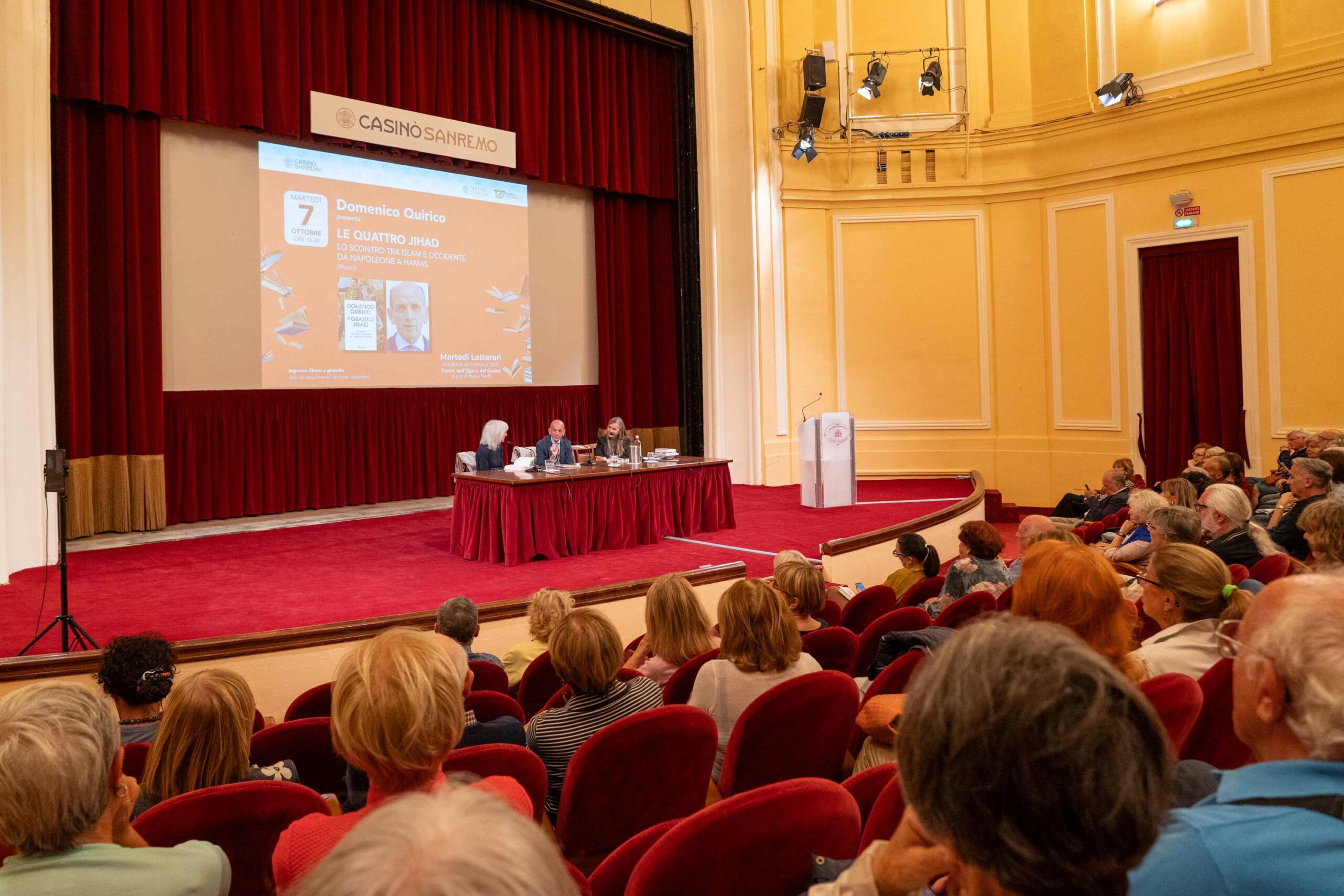 Il pubblico delle grandi occasioni ha accolto nel Teatro dell’Opera del Casinò di Sanremo il giornalista de La Stampa, saggista e corrispondente nelle aree di conflitto, Domenico Quirico. Con il suo Le quattro Jihad. Lo scontro tra islam e Occidente da Napoleone ad Hamas (Rizzoli), ha esaminato, nello scorrere degli avvenimenti dal 1798, il rapporto con l’estremismo islamico nello scacchiere mediorientale. Decisiva la sua esperienza del 2013, quando fu ostaggio per cinque mesi di quella frangia estremista il cui capo era Al-Golani, che oggi regge le sorti della Siria.