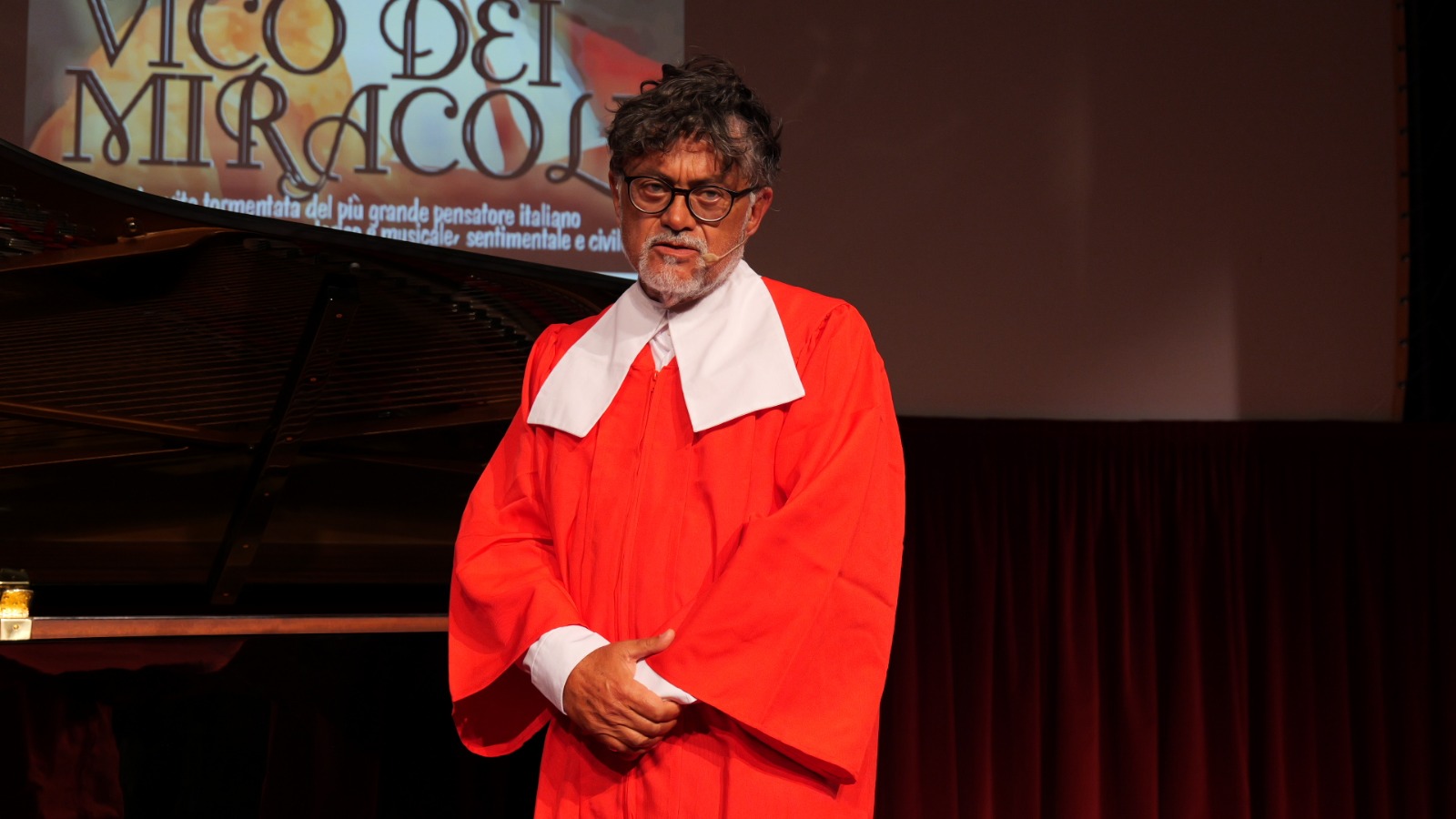 L’autore ha voluto rendere Vico spettacolare, “più vivo e alla portata di tutti”, per far comprendere un pensiero “profondo ma a tratti oscuro, attraverso la chiarezza delle immagini e la forza delle parole”.