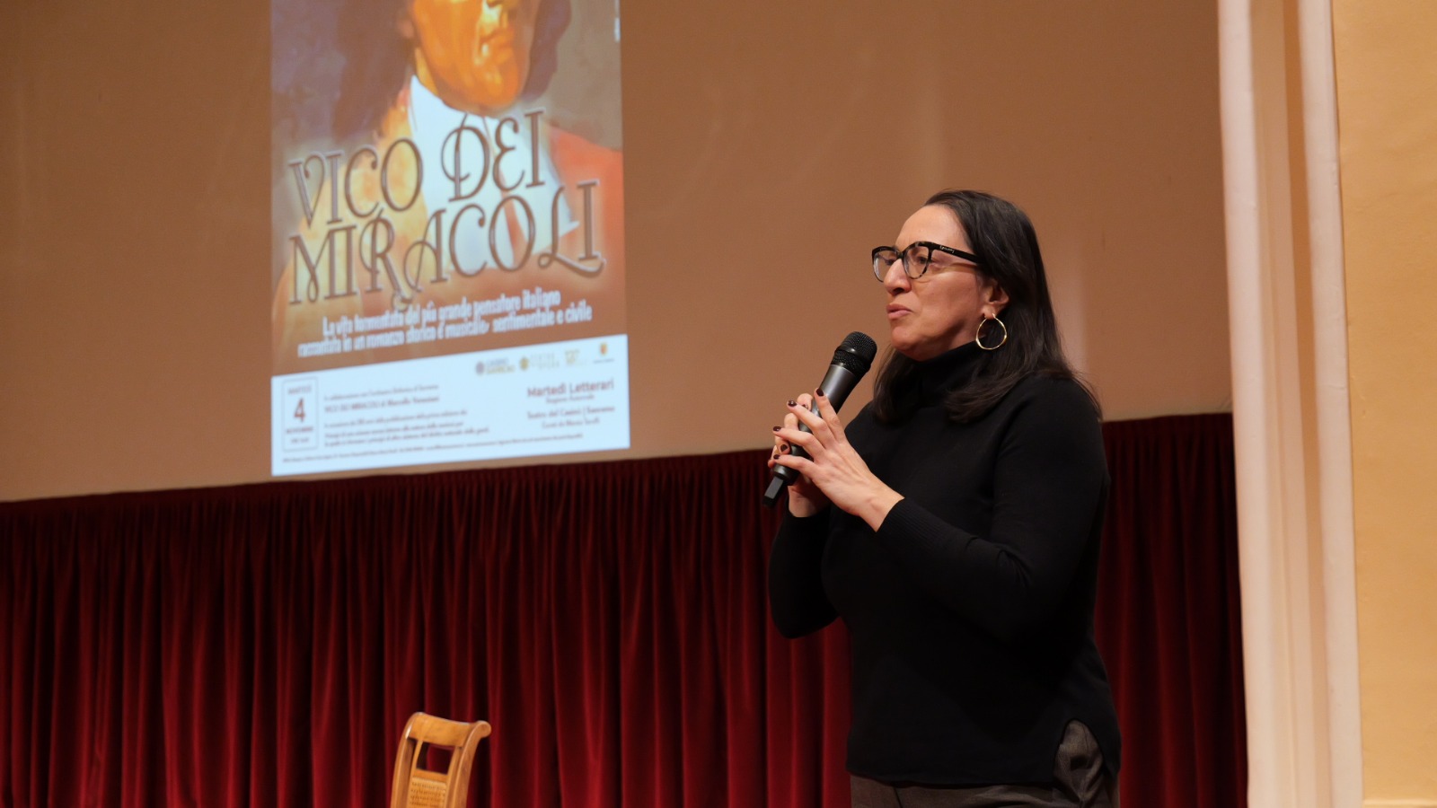 Durante lo spettacolo, Veneziani ha evocato anche l’atmosfera della Napoli del Seicento e Settecento, “che brulica di vita, di curiosità, di fatti enormi”.