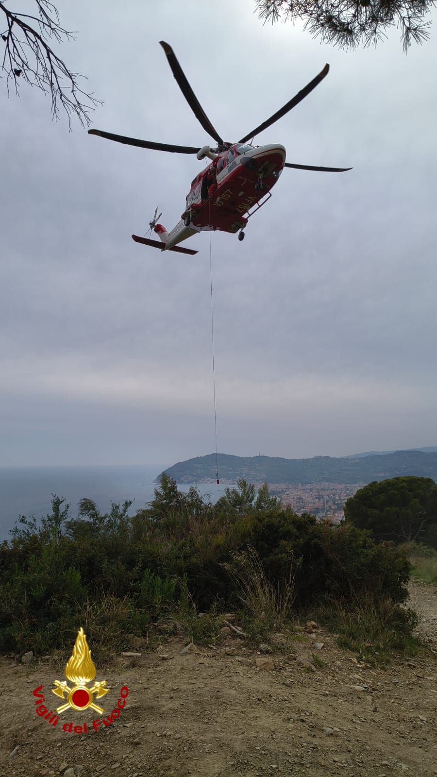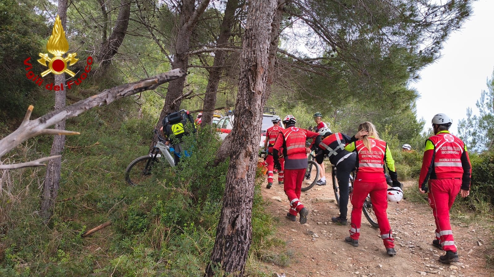 Intervento dei Vigili del Fuoco nel primo pomeriggio di oggi a Cervo, lungo il sentiero di mountain bike nei pressi del “Salto nel Blu”, per soccorrere una biker rimasta ferita durante una gara.