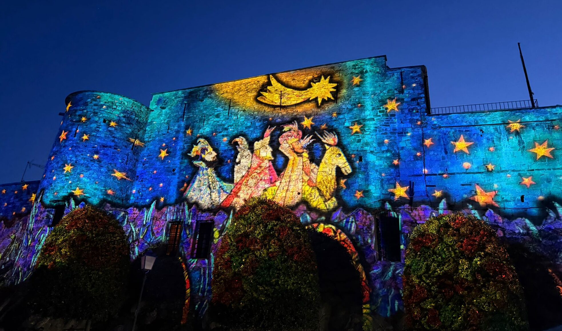 L’inaugurazione ha permesso al pubblico di scoprire per la prima volta l’inedito percorso luminoso firmato da una delle aziende leader nel settore delle illuminazioni e del video mapping. Quattro edifici simbolo del borgo — il Castello dei Clavesana, la Chiesa dei Corallini, la Chiesa di San Nicola e l’ex stazione ferroviaria sulla Via Aurelia (sede della Polizia Locale) — sono stati illuminati da spettacolari illustrazioni e giochi di luce, in un dialogo continuo con l’architettura storica del paese. La piazza dei Corallini si è rivelata il cuore pulsante dell’installazione: oltre alla proiezione sulla facciata della chiesa, l’intera piazza è stata immersa in un total color che ha avvolto pubblico e ambientazioni in un’atmosfera unica. Molto apprezzata anche la sorpresa interattiva per i bambini, che ha riscosso entusiasmo tra i più piccoli.