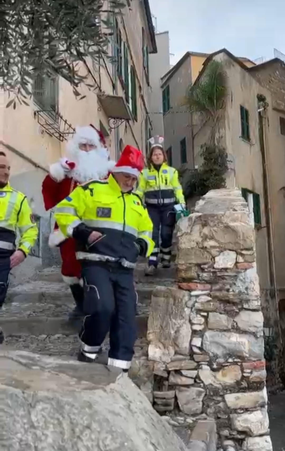 Nel pomeriggio di ieri, la Protezione Civile di Cervo ha regalato un momento speciale ai bambini del borgo, accompagnando Babbo Natale alla recita della scuola primaria, che si è svolta sul suggestivo sagrato della chiesa di San Giovanni Battista. Tra sorrisi, magia e qualche dolcetto distribuito, i piccoli protagonisti hanno vissuto attimi di autentica gioia.