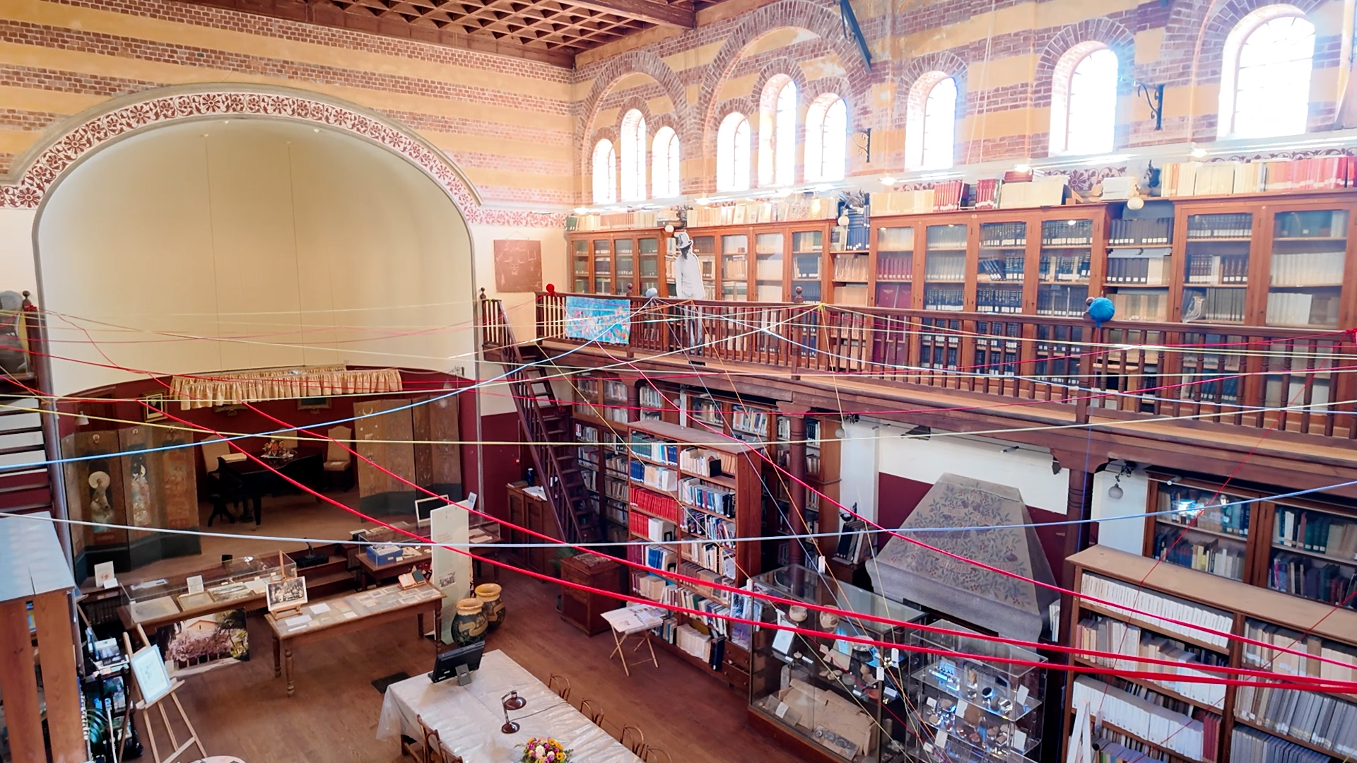 Fu costruito per offrire alla comunità inglese un luogo di raccoglimento e di pace, “un posto dove riunirsi”, come lo definì lo stesso Bicknell. Il museo divenne presto un vivace centro culturale, dove si tenevano concerti e spettacoli teatrali. I paraventi in tela di iuta, visibili ancora oggi, furono realizzati dagli amici pittori Giuseppe Piana e Friederich von Kleudgen e utilizzati come scenografie per le rappresentazioni. In particolare, il paravento di Piana raffigura quattro delle cinque arti; nella parte superiore compaiono gli stessi artisti – Piana, Pompeo Mariani, von Kleudgen e Kurt Nessel – autoritratti con un’aureola, in un gesto ironico di autocelebrazione della loro arte.
