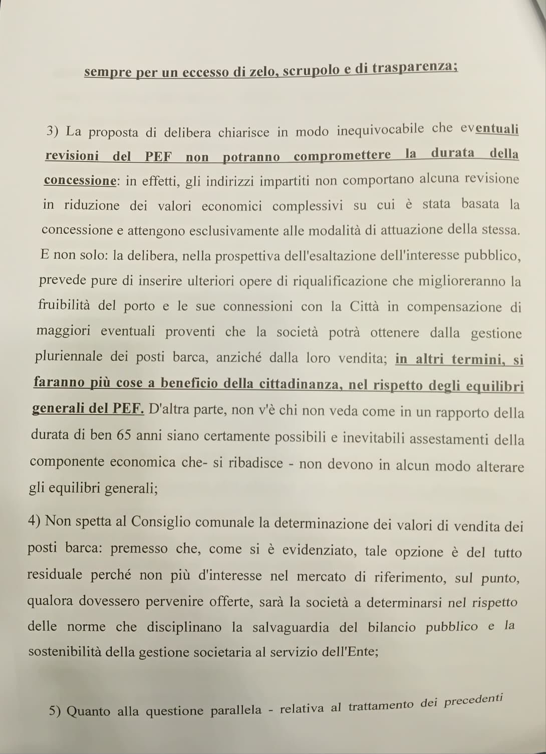 “Il porto è rimasto fermo per 15 anni conclude il sindaco “e la città non può permettersi altri ritardi. Se non ci fosse stata quell’inchiesta farlocca il porto sarebbe completato da tempo. Non possiamo perdere un minuto. Questa delibera non mette in discussione il modello in house e consente finalmente di far partire i cantieri”.