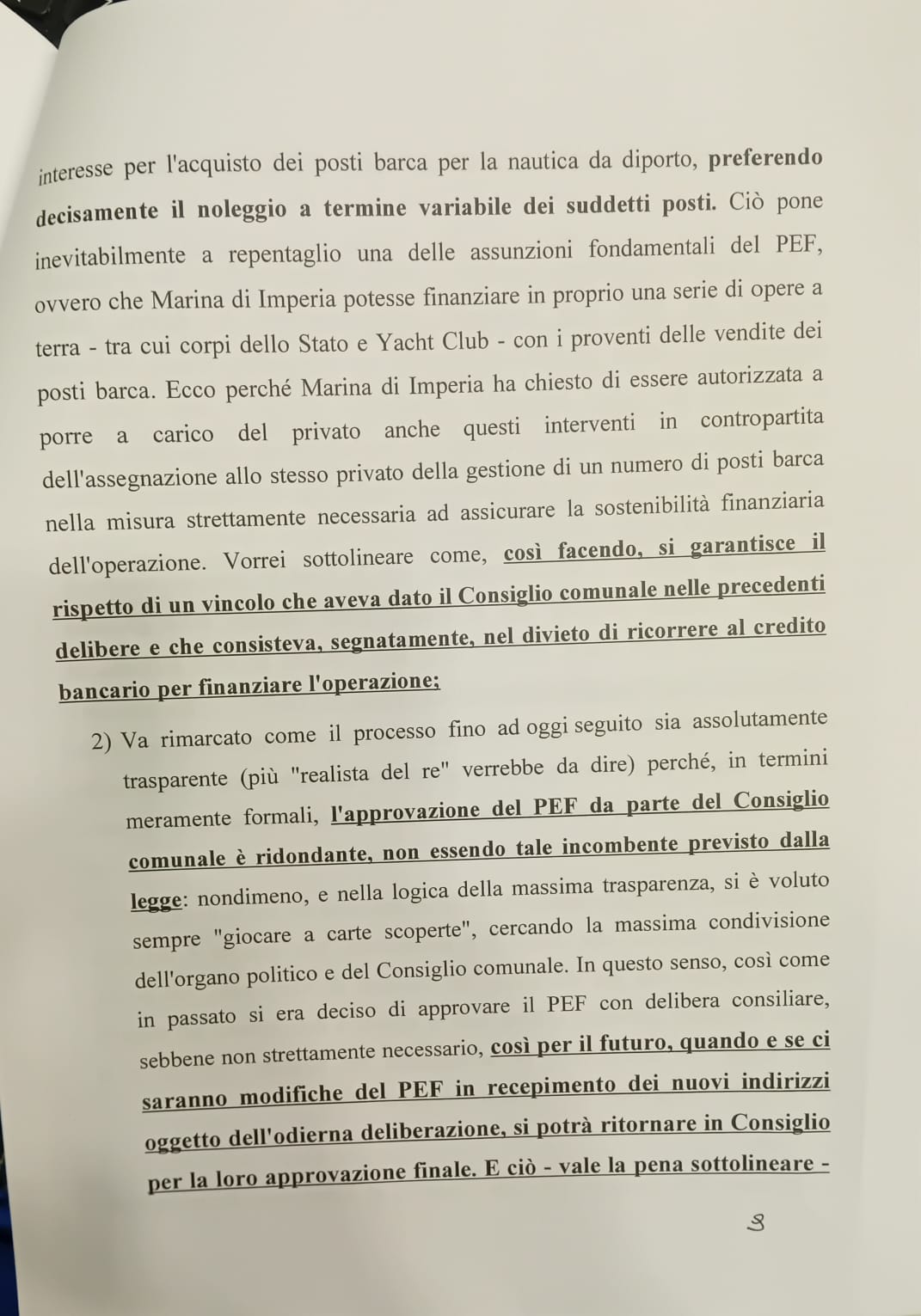 Seduta molto attesa in consiglio comunale a Imperia con al centro il futuro del porto turistico, data la presenza in scaletta della discussione riguardo la delibera sugli indirizzi operativi a Marina di Imperia s.r.l. per l’attuazione della concessione demaniale marittima rilasciata l’1 settembre 2025, della durata di 65 anni.