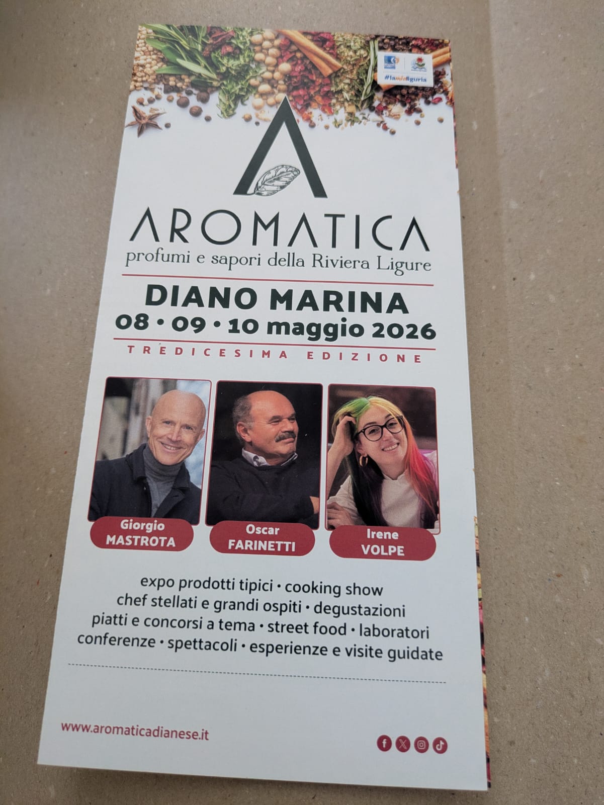 “Aromatica continua il suo percorso di crescita, intercettando ogni anno un pubblico sempre più vasto e diversificato. Questo successo è il frutto di un lavoro costante e di una strategia promozionale mirata, che vede in ‘Aromatica Off’ un pilastro fondamentale. Le attività di ‘Aromatica Off’, estese ben oltre i confini regionali e nazionali, ci hanno permesso di portare il nome di Diano Marina e le eccellenze della nostra ter in contesti prestigiosi come San Damiano d’Asti, Genova, Albenga, Cuneo e Nizza. Questo ha contribuito in maniera significativa ad ampliare la risonanza dell’evento e ad attrarre visitatori desiderosi di scoprire i nostri sapori e le nostre tradizioni. Vi aspettiamo a Diano Marina”, ha concluso l’assessore al Turismo Luca Spandre.