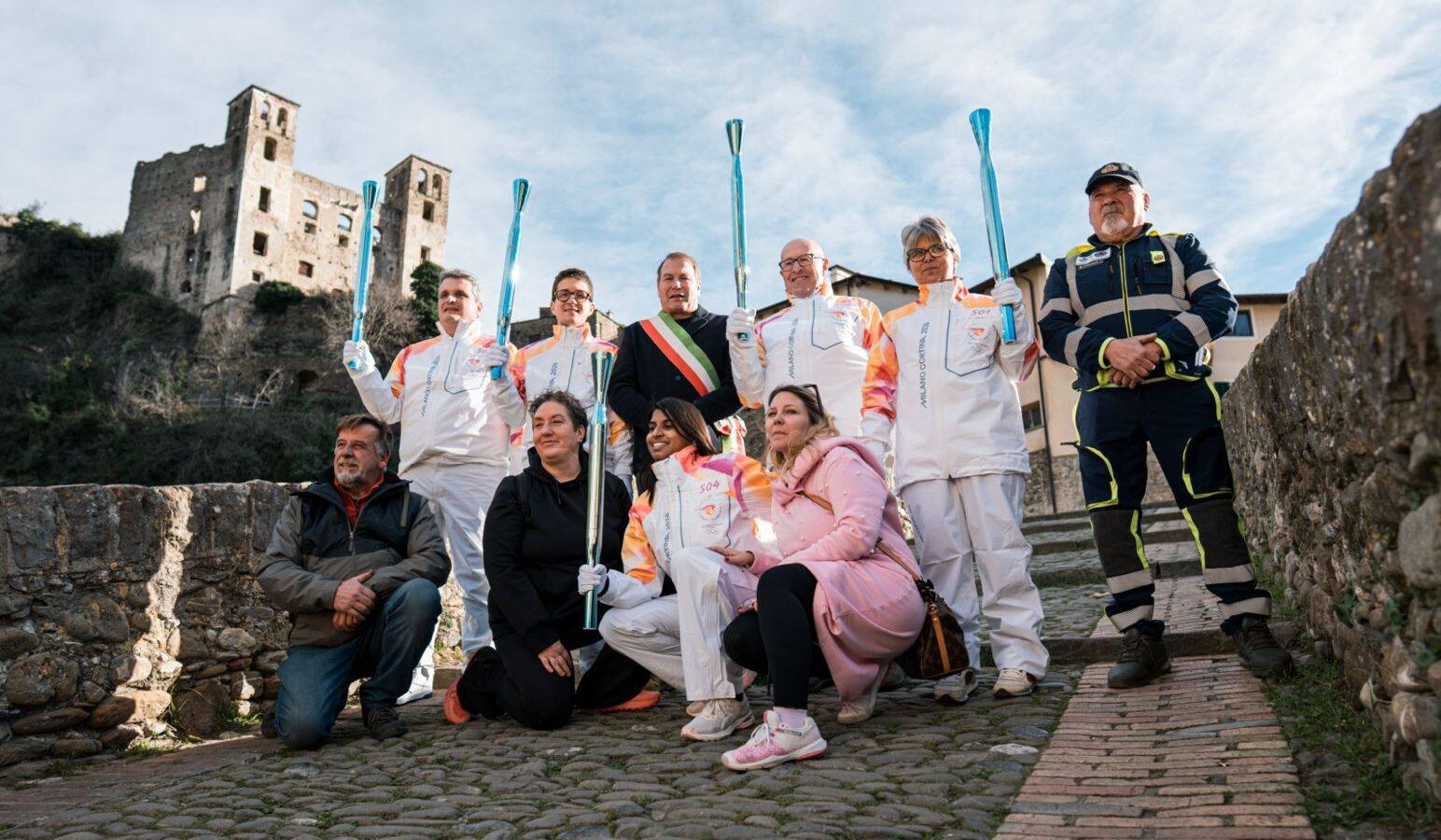 Il percorso della torcia ha preso il via dal parcheggio di San Filippo, per poi snodarsi tra i caruggi del borgo fino a raggiungere la chiesa di San Giorgio, trasformando per qualche ora il cuore dell’entroterra intemelio in uno dei punti nevralgici del cammino ligure della fiamma.