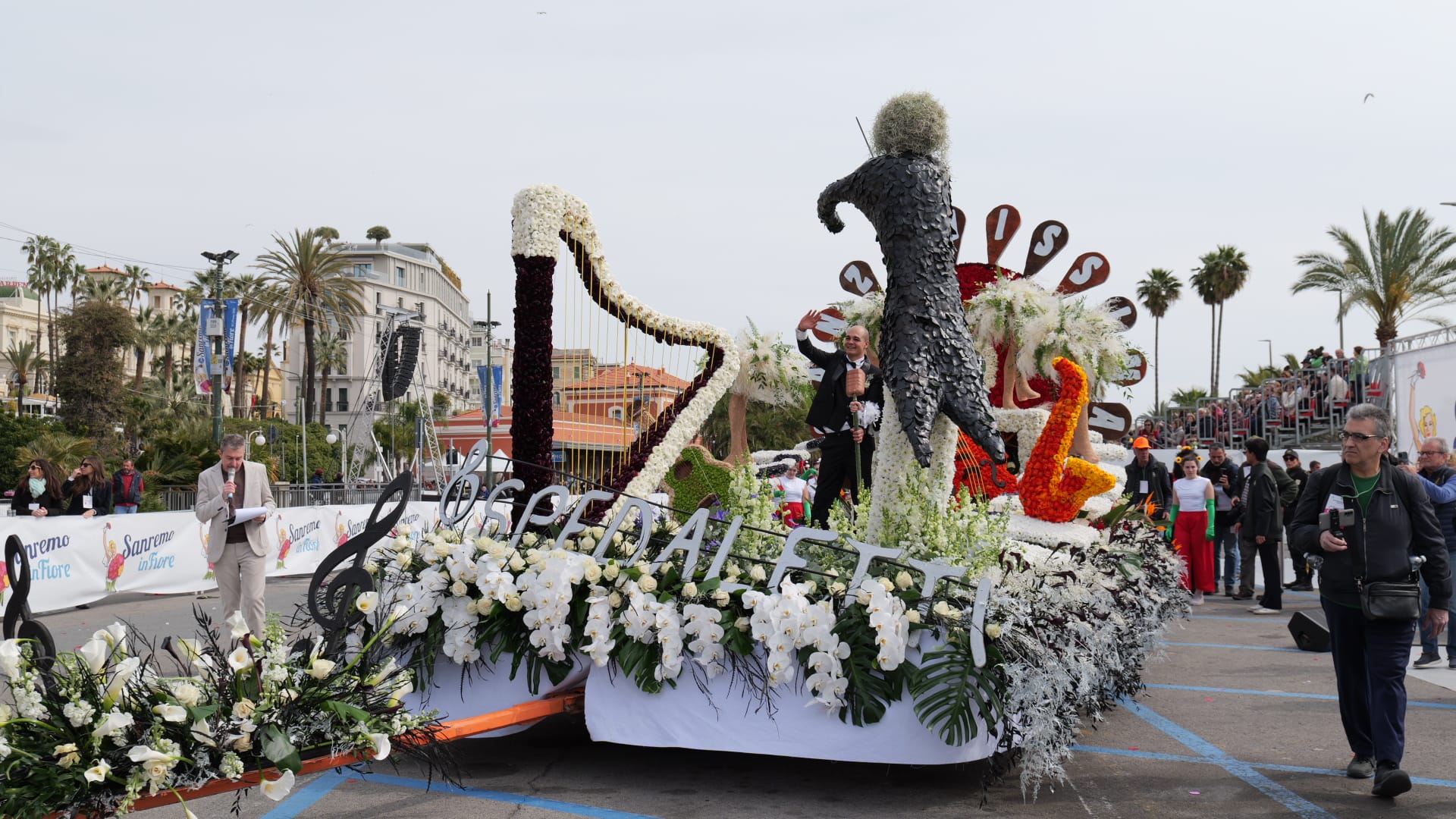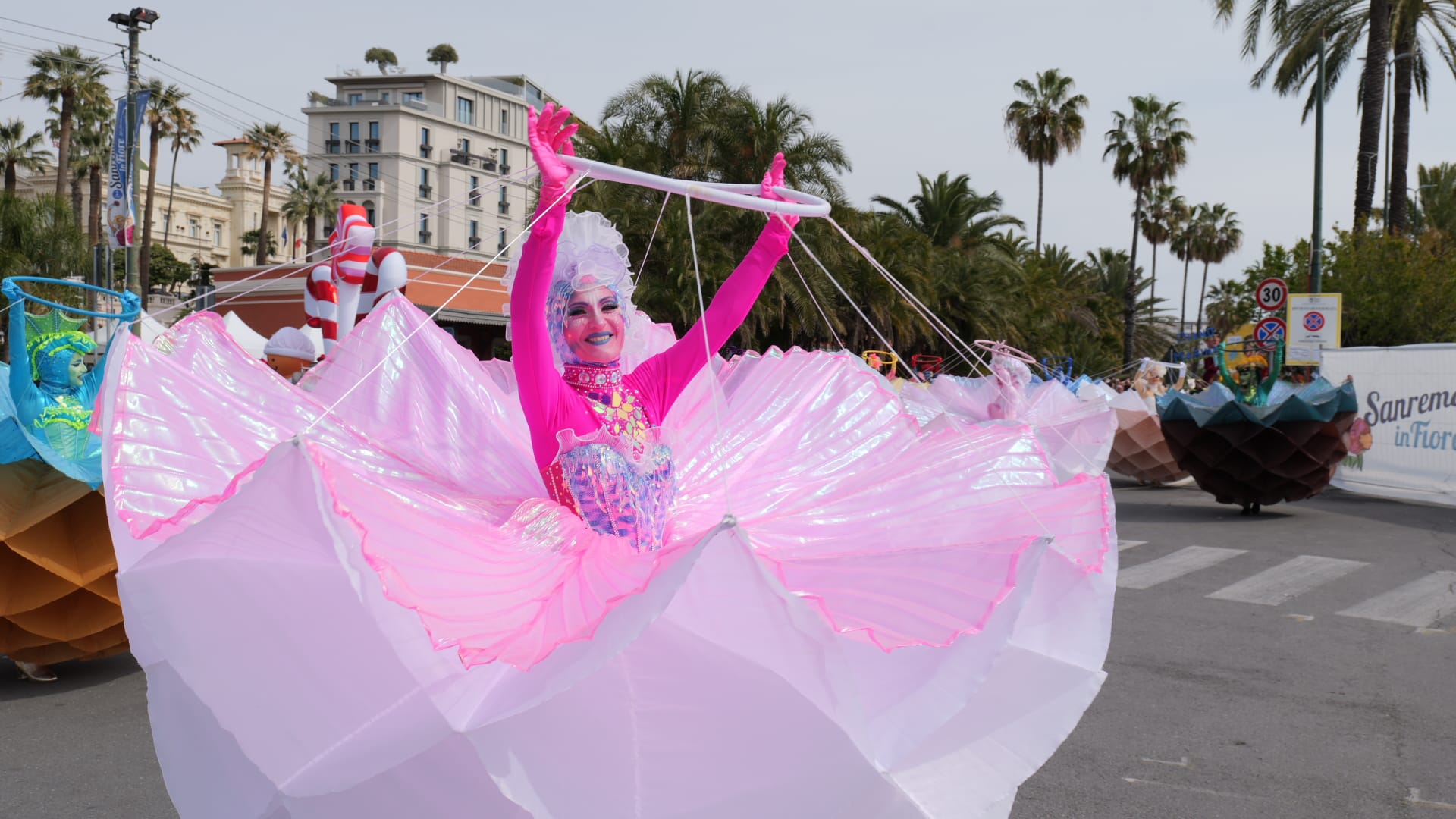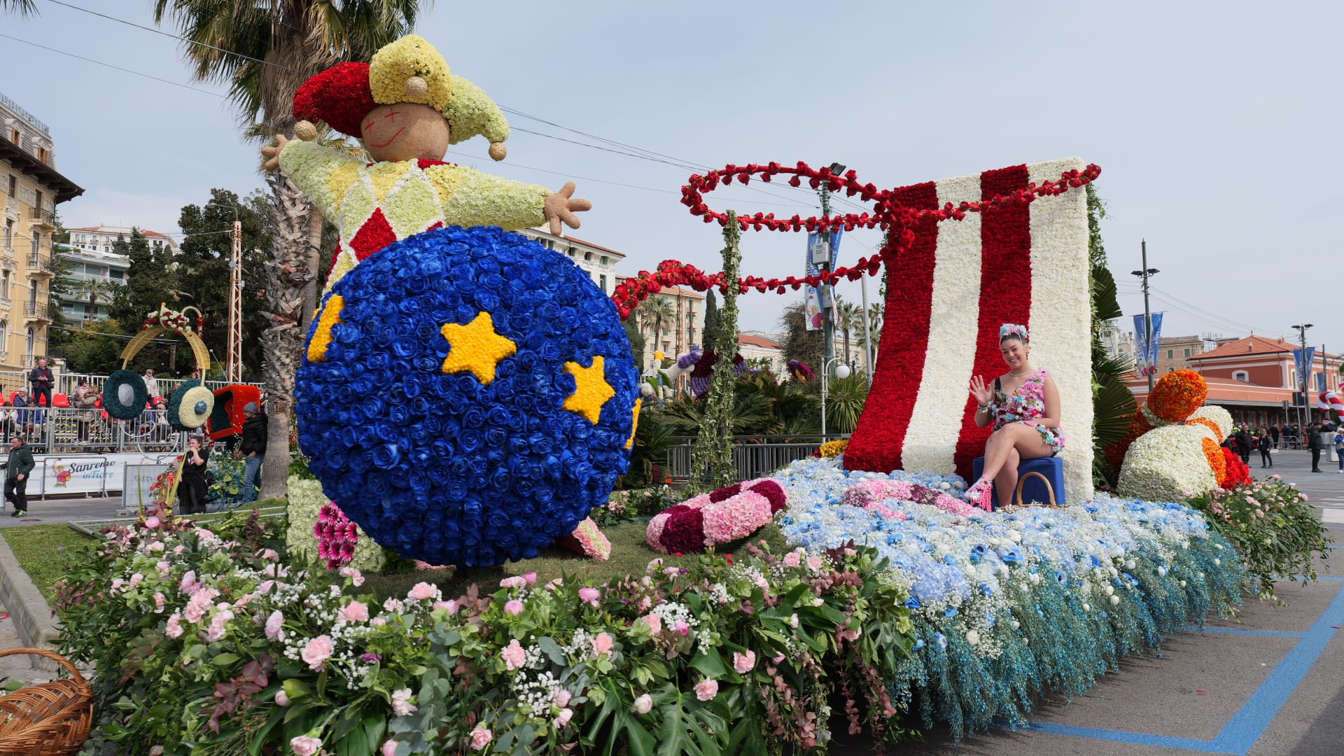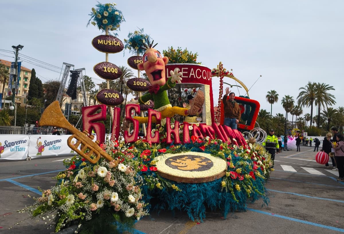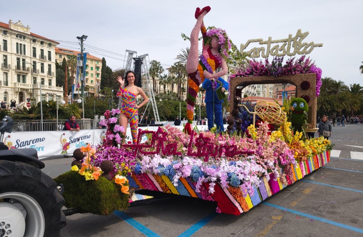 La bellezza dei fiori che ornano i carri creando scenografie quasi impossibili sfilano per Sanremo, opera di ore di maestria e pazienza dei tanti volontari che si adoperano per far fare bella figura al proprio comune.