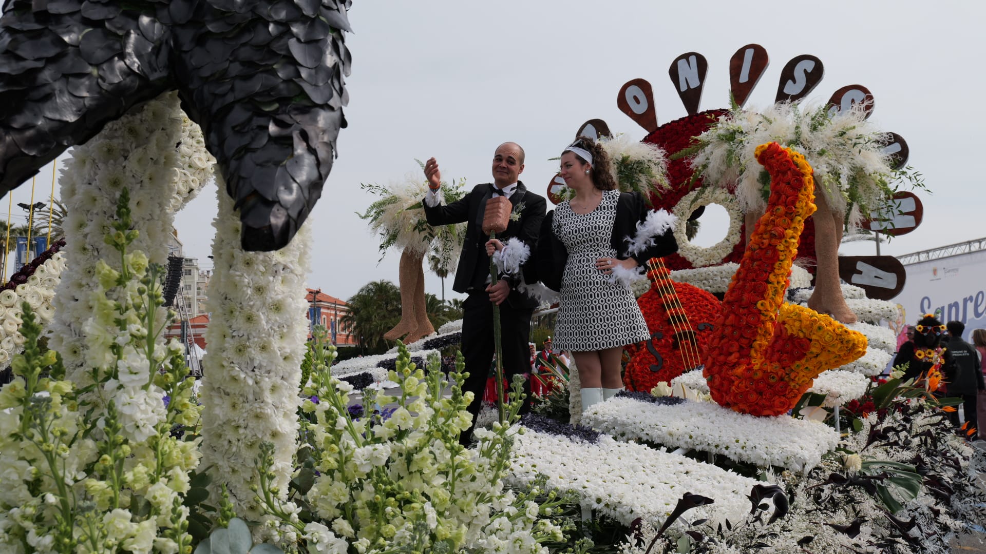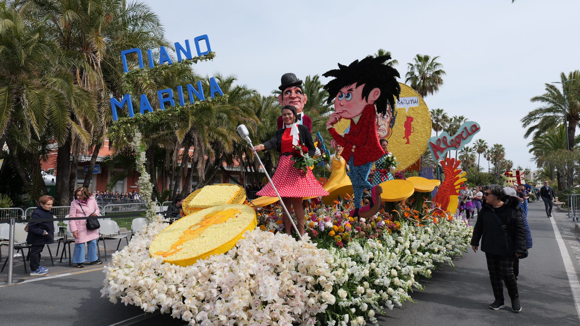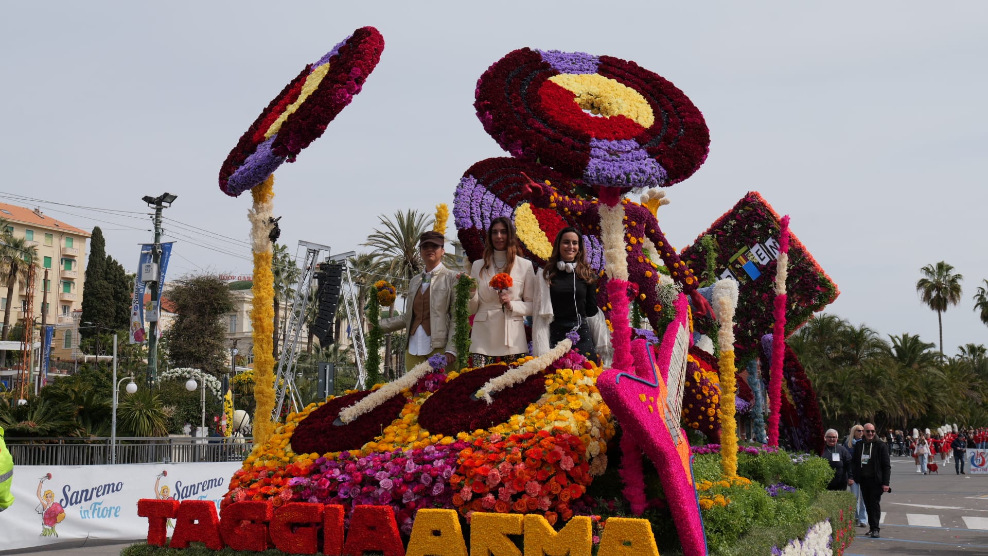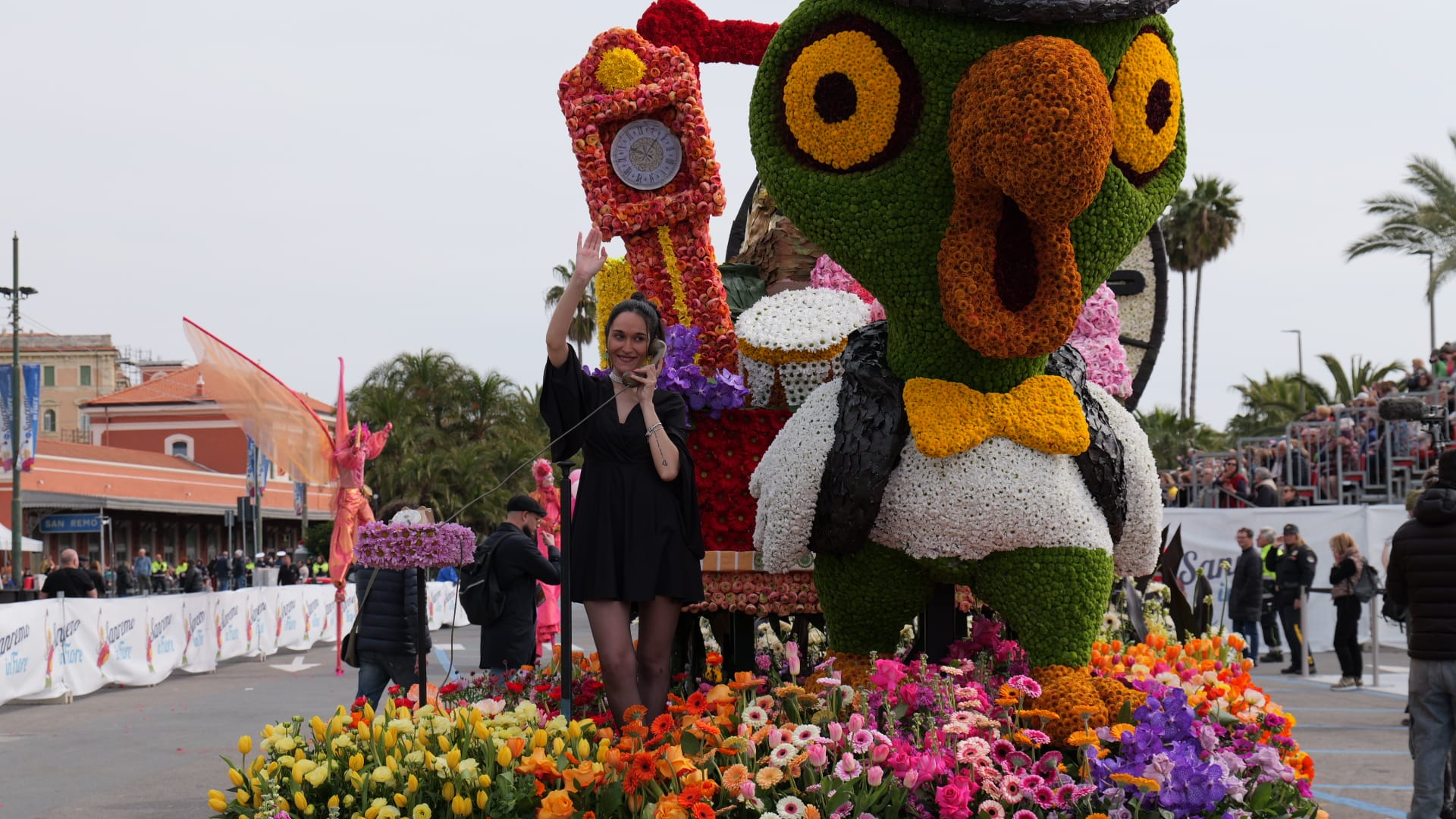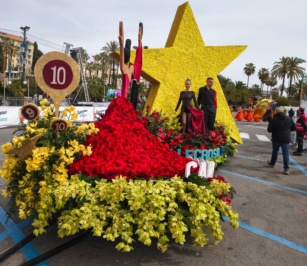 La bellezza dei fiori che ornano i carri creando scenografie quasi impossibili sfilano per Sanremo, opera di ore di maestria e pazienza dei tanti volontari che si adoperano per far fare bella figura al proprio comune.