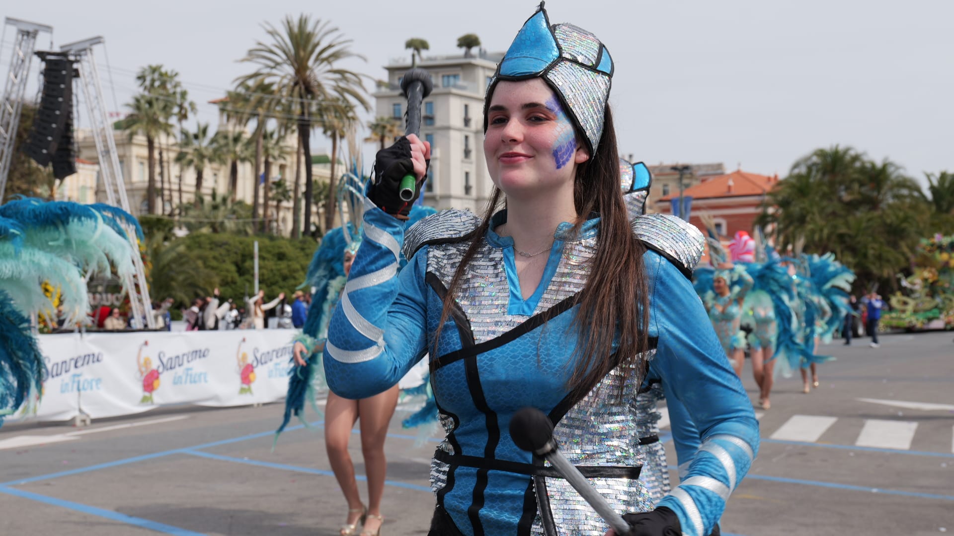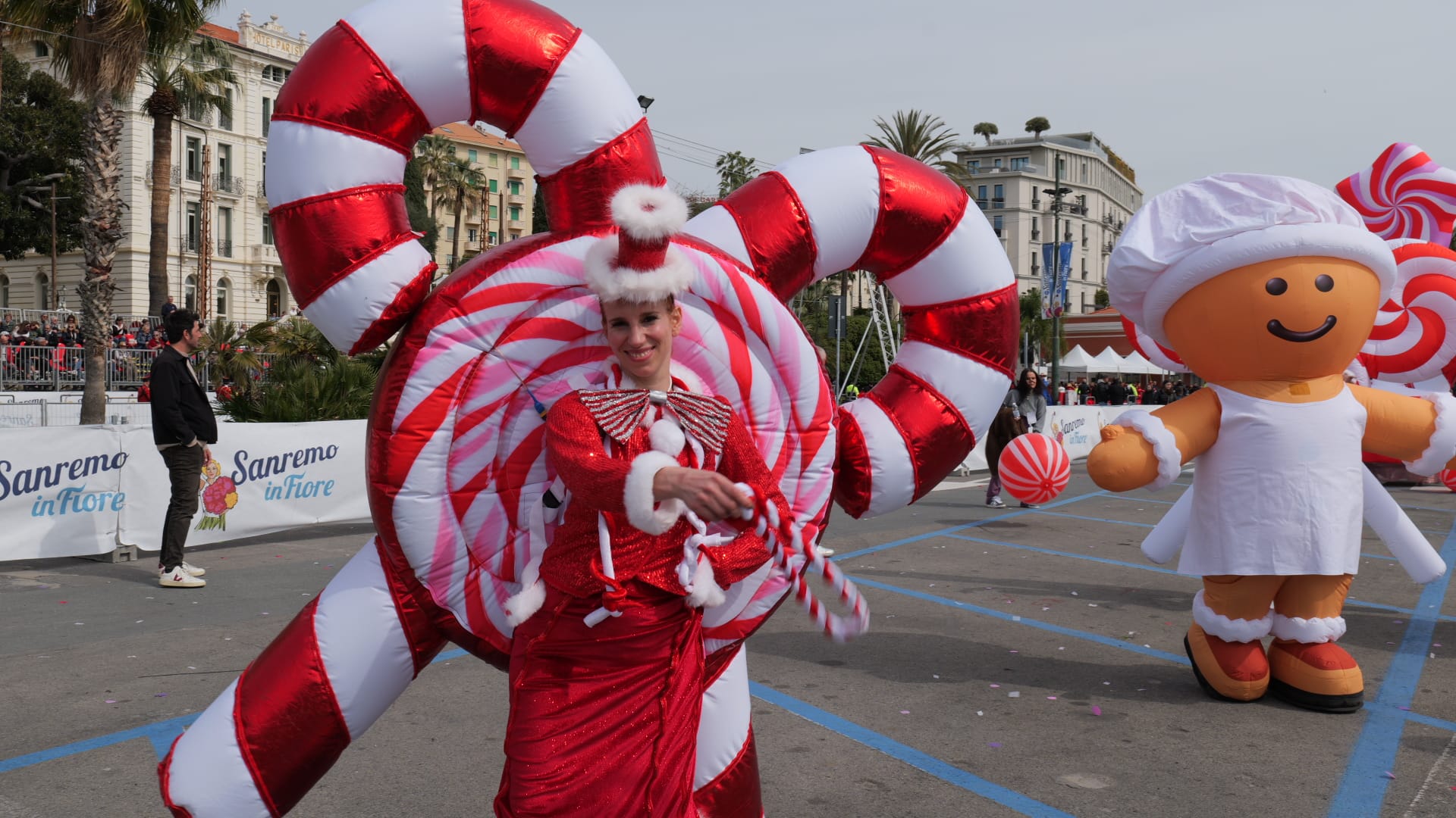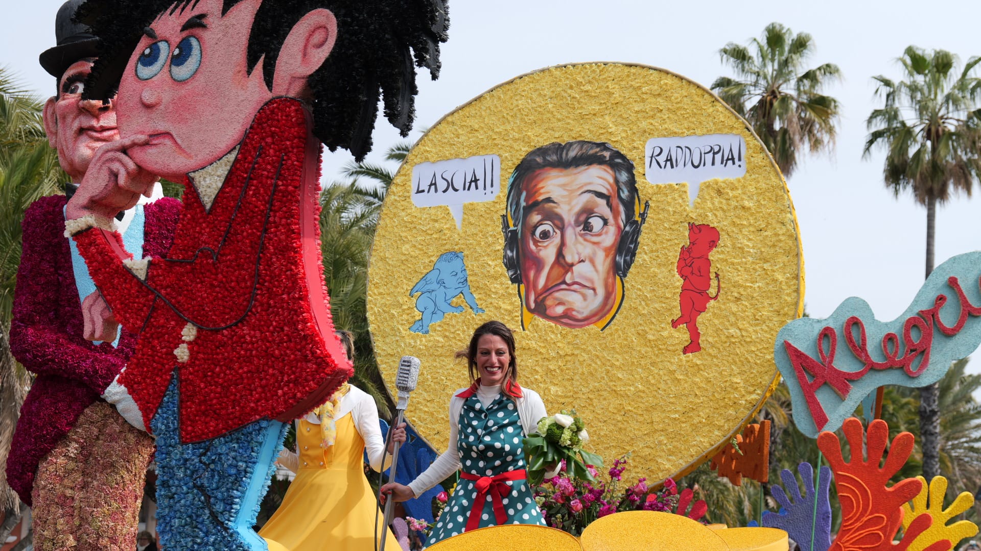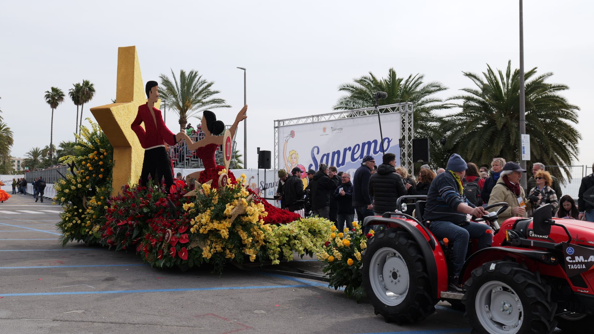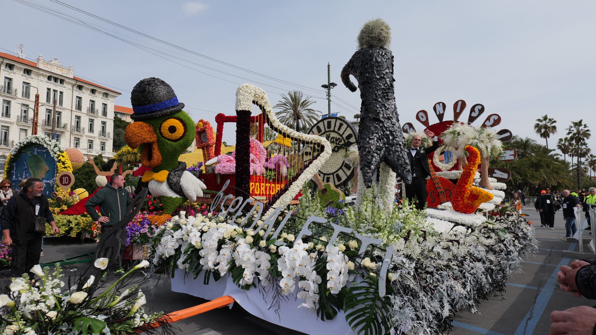 La bellezza dei fiori che ornano i carri creando scenografie quasi impossibili sfilano per Sanremo, opera di ore di maestria e pazienza dei tanti volontari che si adoperano per far fare bella figura al proprio comune.