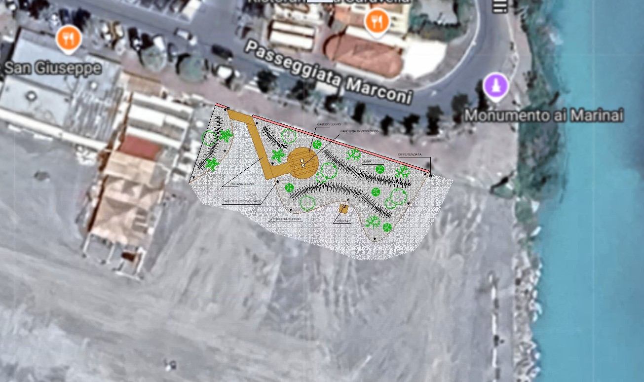Grazie a queste risorse, e sotto il coordinamento dell’assessore al Demanio Adriano Catalano, è stato progettato un prototipo innovativo a cura dell’IRC – Istituto Regionale per la Floricoltura. L’intervento prevede la realizzazione di una tettoia verde, dotata di una copertura piantumata con specie autoctone e integrata con elementi di arredo realizzati mediante materiali di riciclo. La struttura sarà collocata a livello spiaggia e destinata a diventare un’area ludica ombreggiata presso la Marina San Giuseppe, tra gli stabilimenti San Giuseppe e Stella Marina, con l’obiettivo di migliorare il comfort, la fruibilità e la qualità degli spazi pubblici costieri.
