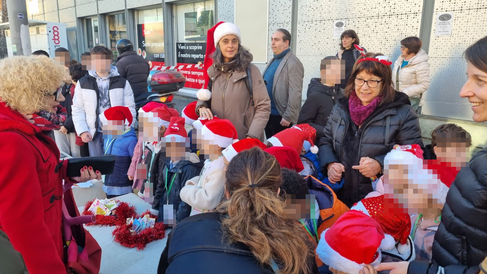 Il vicesindaco si è poi recato presso i banchetti degli alunni della Scuola Nobel (Istituto Comprensivo Sanremo Ponente) allestiti in corso Matuzia. A tutti i visitatori sono stati proposti i disegni e i piccoli oggetti realizzati dai bambini in occasione delle Festività Natalizie.