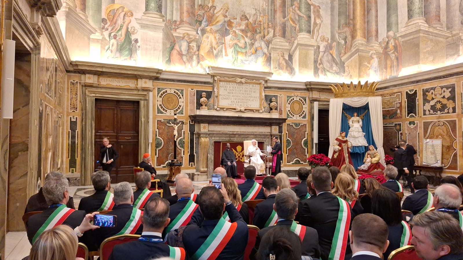 “I sindaci hanno certamente bisogno delle sue preghiere, ma Lei, per la sua complicatissima missione, ne ha più bisogno di noi”, ha dichiarato Scajola rivolgendosi al Papa.
