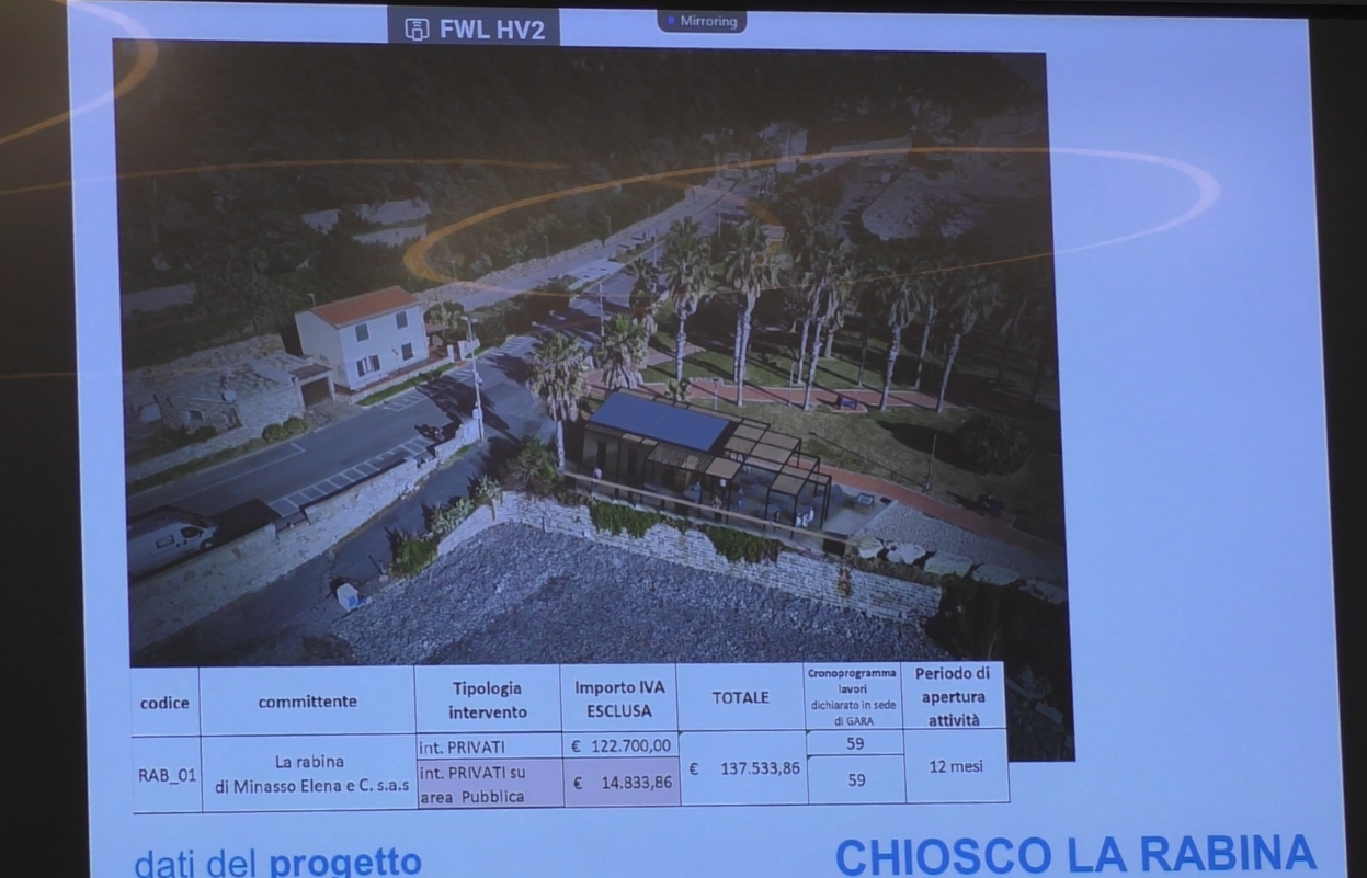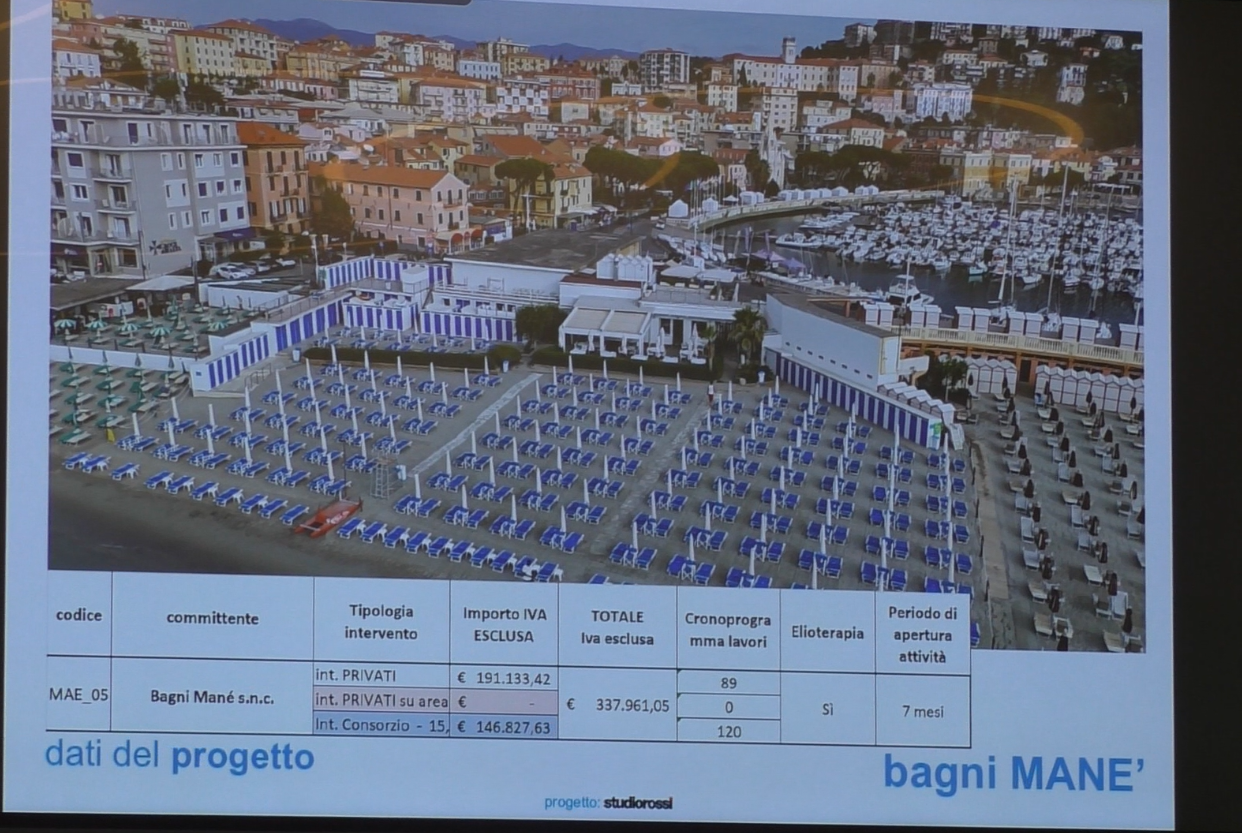 Presentati anche i progetti di riqualificazione del litorale tra cui allargamento della strada a Borgo Prino, il waterfront di Borgo Marina a Porto Maurizio, il recupero della palazzina liberty, l’edificio monumentale alla Marina, la trasformazione dell’ex info-point di Oneglia in un ristorante e la realizzazione di un nuovo chiosco alla Rabina.