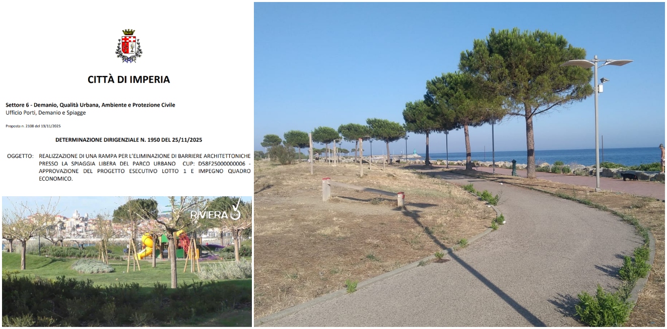 Con la determinazione dirigenziale n. 1950 del 25 novembre 2025, il Comune di Imperia ha approvato il progetto esecutivo del ‘Lotto 1’ per la realizzazione della nuova rampa di accesso alla spiaggia libera del Parco Urbano, un intervento atteso da tempo e pensato per eliminare le barriere architettoniche che limitano la fruibilità dell’area.