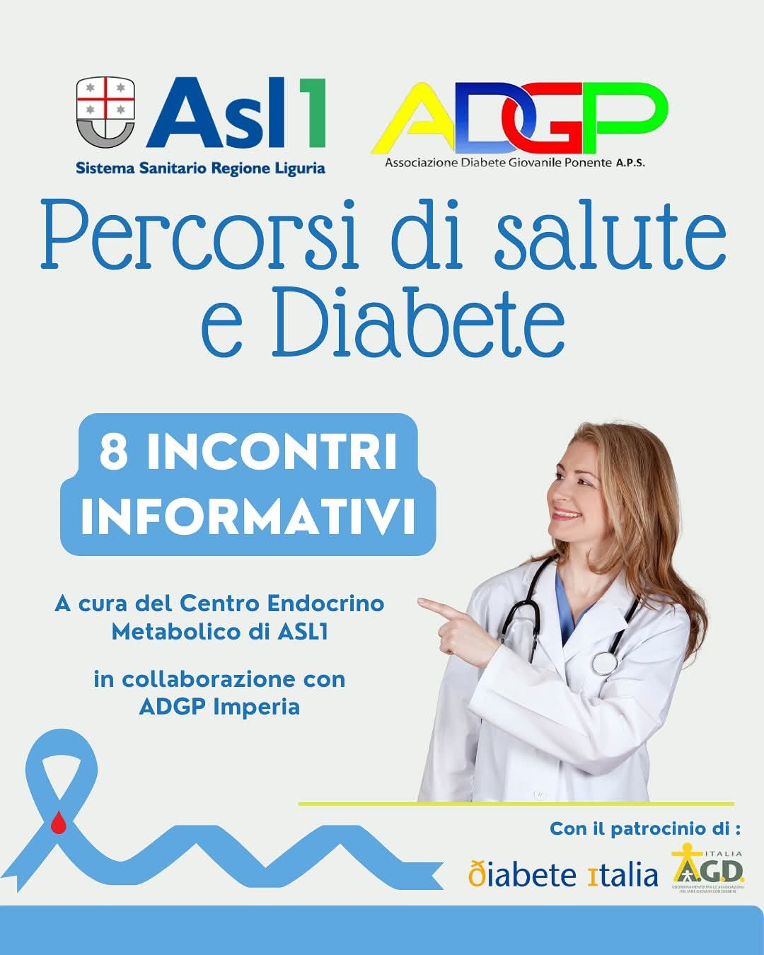Pertanto presso il Palasalute di Imperia di via Acquarone al piano terra della Casa della ComunitĂ , dalle 16 alle 17,30 di lunedì 6 ottobre, si terrĂ la conferenza con relatore il dott. Alberto Agliarolo, responsabile centro Endocrino Metabolico di Asl1 su Diabetologia-Ipoglicemie DM1 e DM2.Â