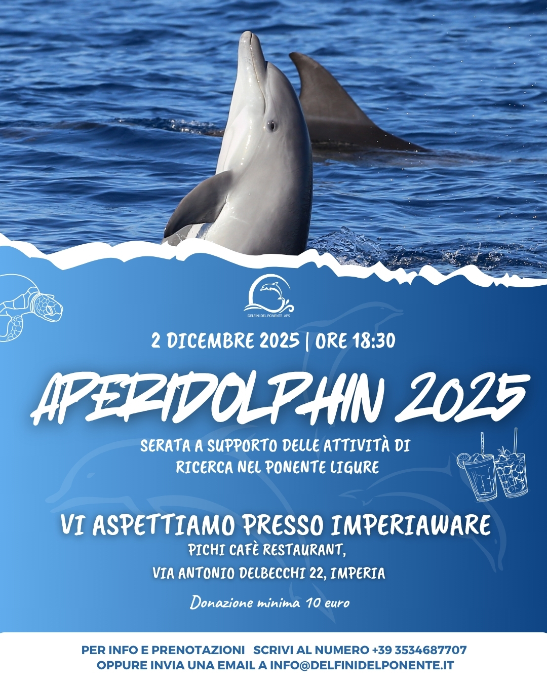 Martedì 2 dicembre, alle ore 18:30, presso Imperiaware in via Dulbecco 22 a Imperia torna l’Aperidolphin. Cosa è successo durante le uscite di ricerca 2025 di Delfini del Ponente? Quanti tursiopi hanno incontrato? Ci sono nuovi cuccioli nel Ponente Ligure? E com’è andata la stagione dei nidi di tartaruga marina in Liguria? Sono le domande alla base dell’iniziativa organizzata dall’associazione Delfini del Ponente APS.