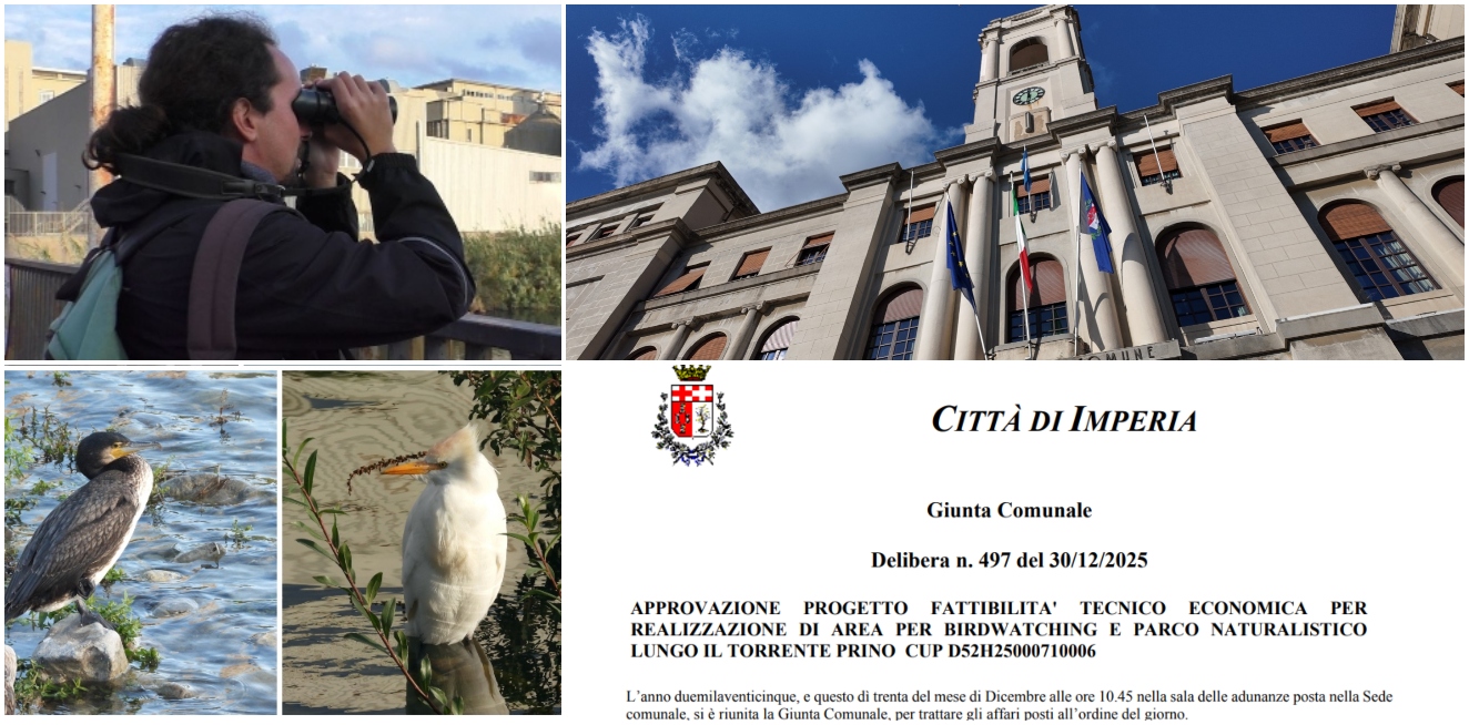La Giunta comunale di Imperia ha approvato il progetto di fattibilità tecnico-economica per la realizzazione di un’area dedicata al birdwatching e a un parco naturalistico lungo il Torrente Prino, all’altezza del ponte romano. La delibera, n. 497 del 30 dicembre 2025, è stata votata all’unanimità durante la seduta presieduta dal sindaco Claudio Scajola.