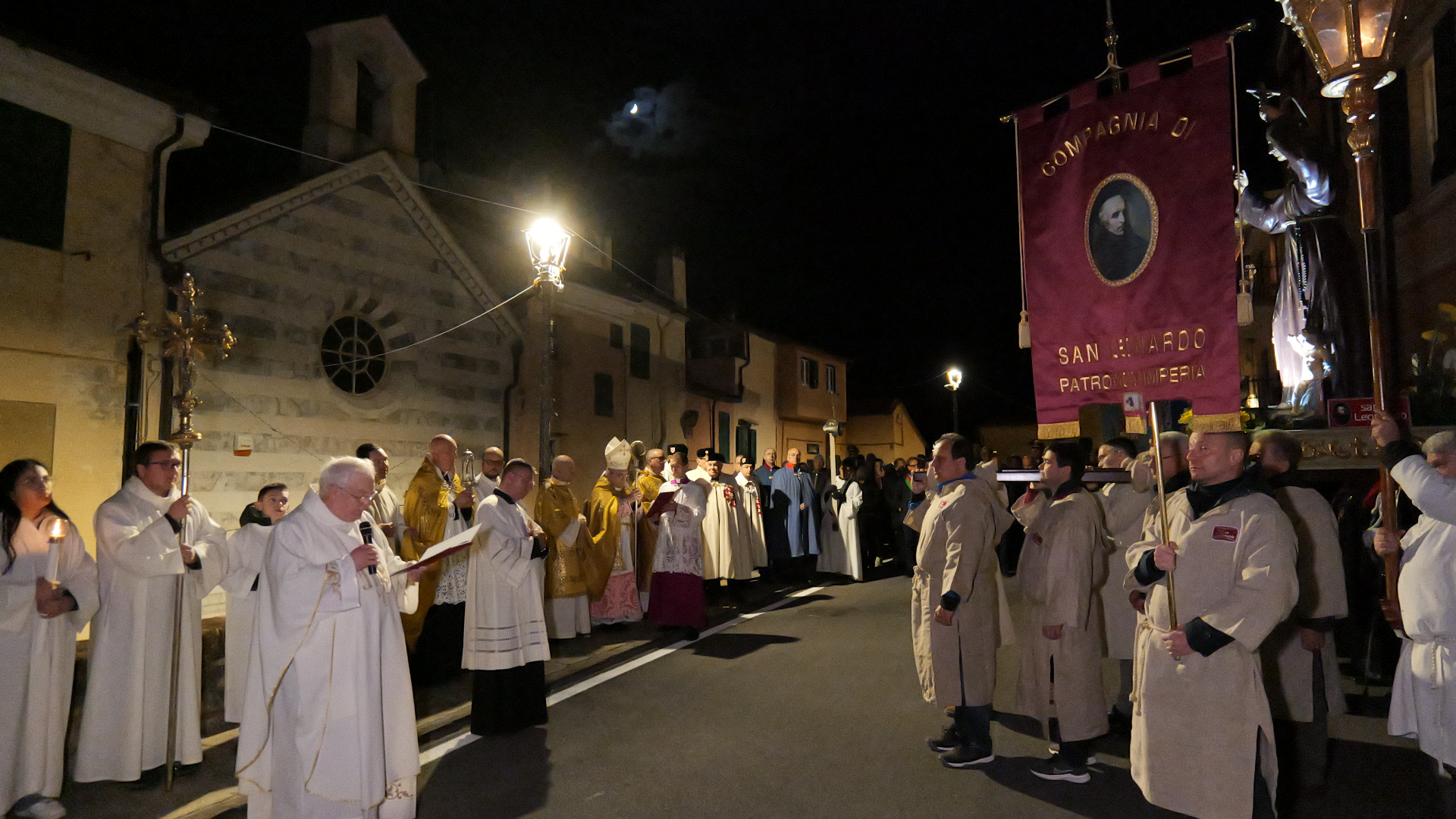 La tradizionale festa di San Leonardo ha riunito questa sera un grande numero di fedeli per la messa solenne e la successiva processione nel cuore della città di Imperia. La celebrazione ha visto anche la partecipazione del sindaco Claudio Scajola, dell’assessore regionale Marco Scajola e delle autorità civili.