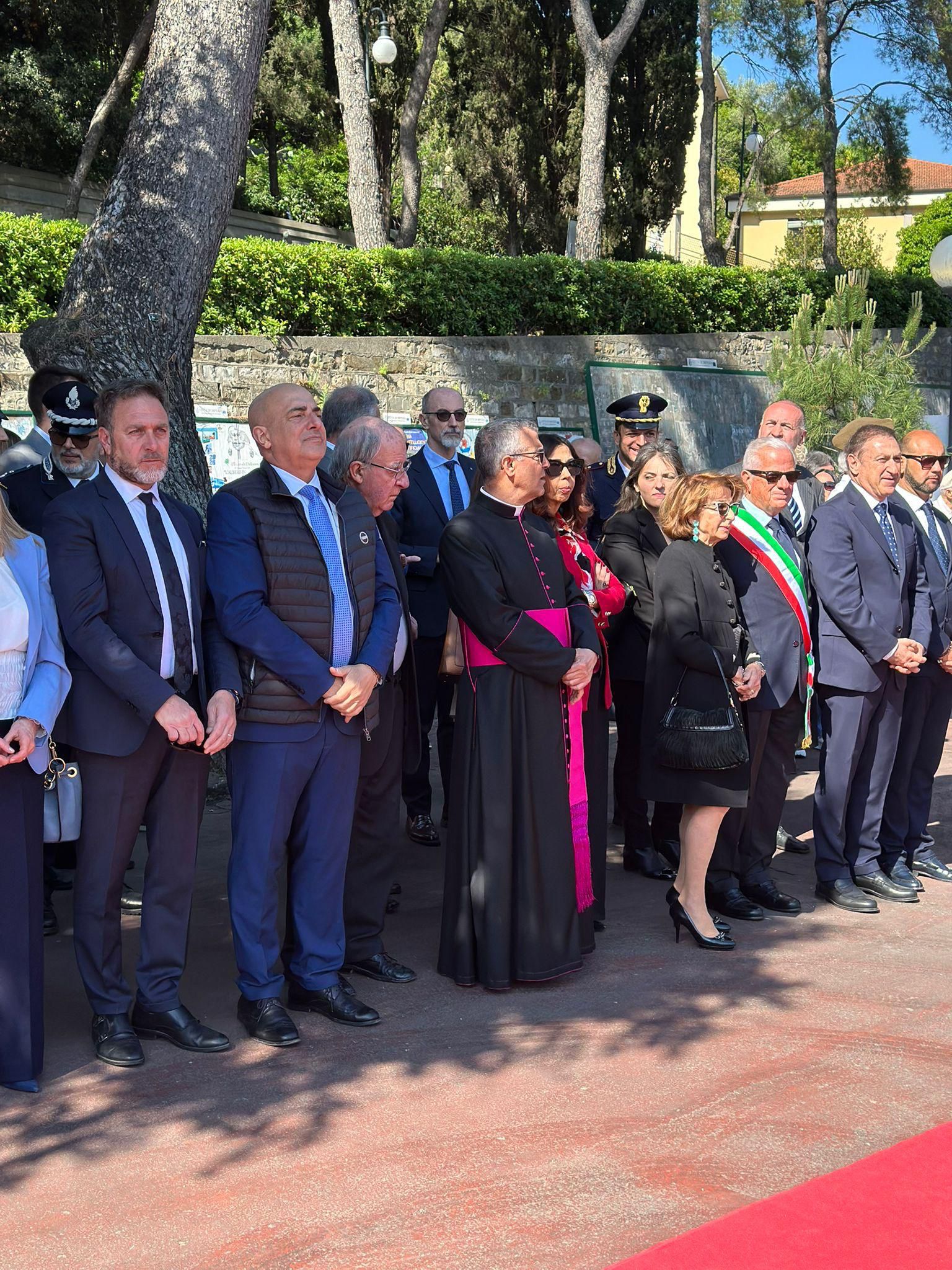 Dopo l’alzabandiera e la lettura dei messaggi ufficiali, si sono susseguiti gli interventi delle autorità. Tra questi, il prefetto di Imperia Antonio Giaccari, il sindaco e presidente della Provincia Claudio Scajola, e l’orazione ufficiale affidata al procuratore generale emerito Pierpaolo Rivello.