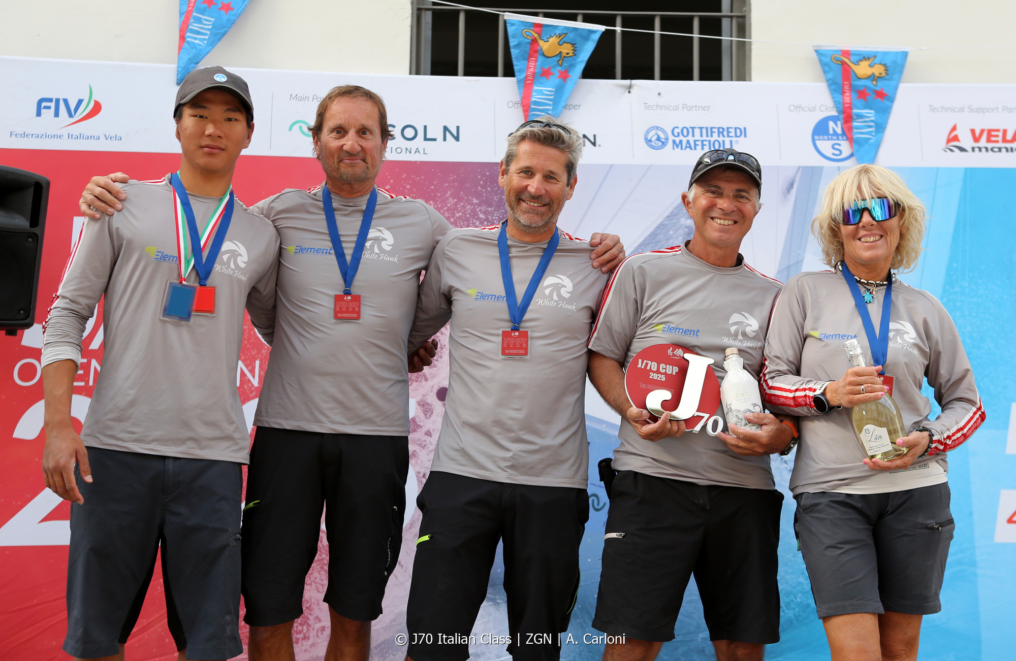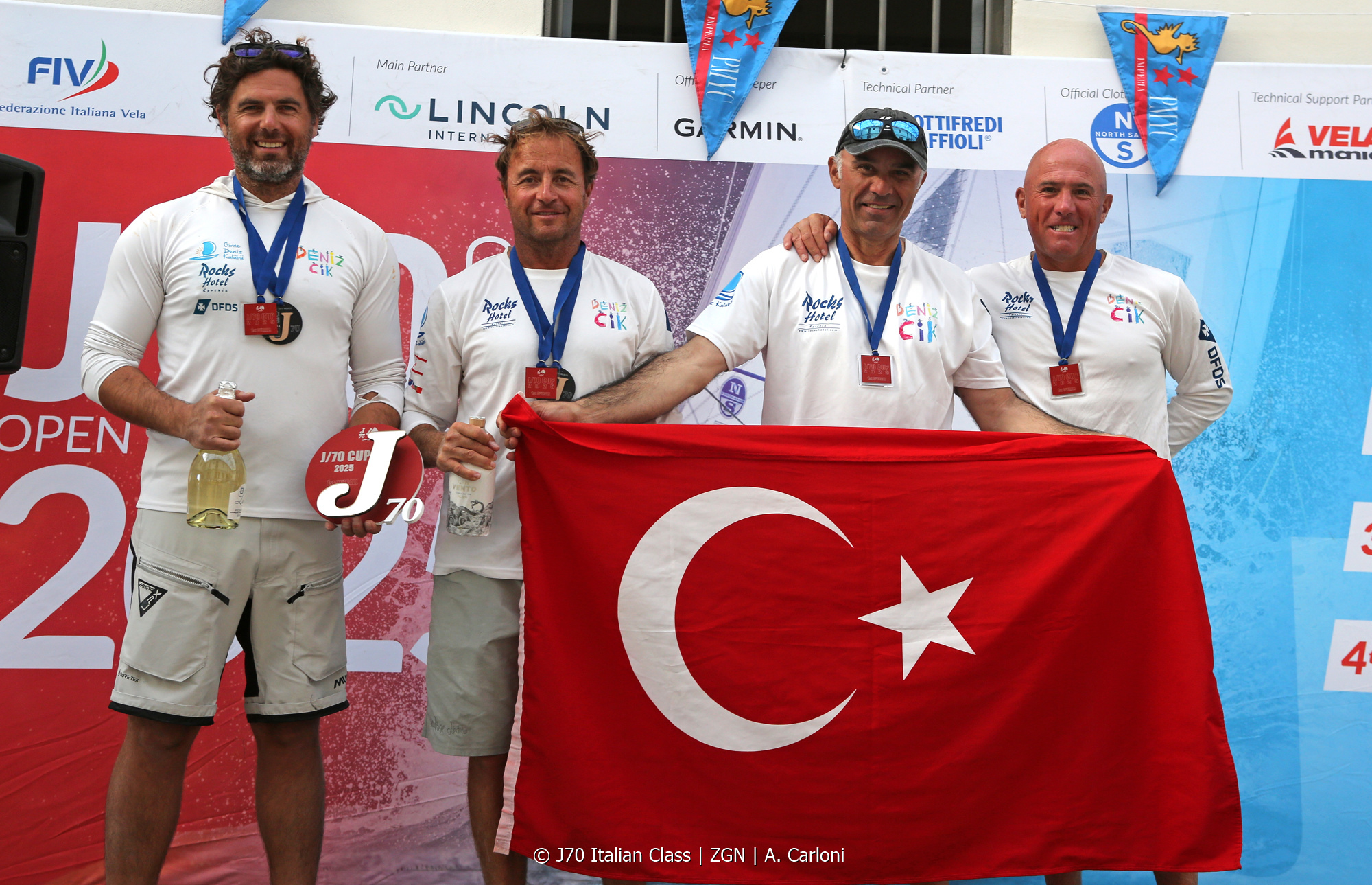 Notaro Team di Luca Domenici, Campione Italiano nel 2024 e al rientro nel circuito per difendere il titolo, conquista la medaglia d’argento, mentre Denizcik di Gulboy Guryel si classifica terzo nella tappa e conquista la vittoria del circuito J/70 Cup 2025. J-Curve di Mauro Roversi chiude quarto overall ma terzo tra gli italiani, assicurandosi il bronzo tricolore. Chiude la top-five Elvis di Filip Engelbert, vincitore della prima regata di oggi e di due prove in tutto nella serie di Imperia.