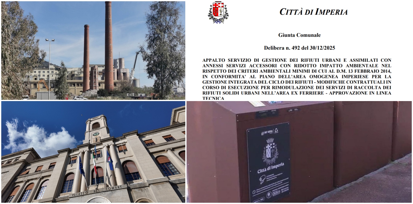 La Giunta comunale di Imperia ha approvato in linea tecnica una modifica dell’appalto per la gestione dei rifiuti urbani, con una rimodulazione dei servizi di raccolta nel quartiere Ex Ferriere e un aumento del canone annuo di circa 70mila euro oltre IVA fino al 2030.​