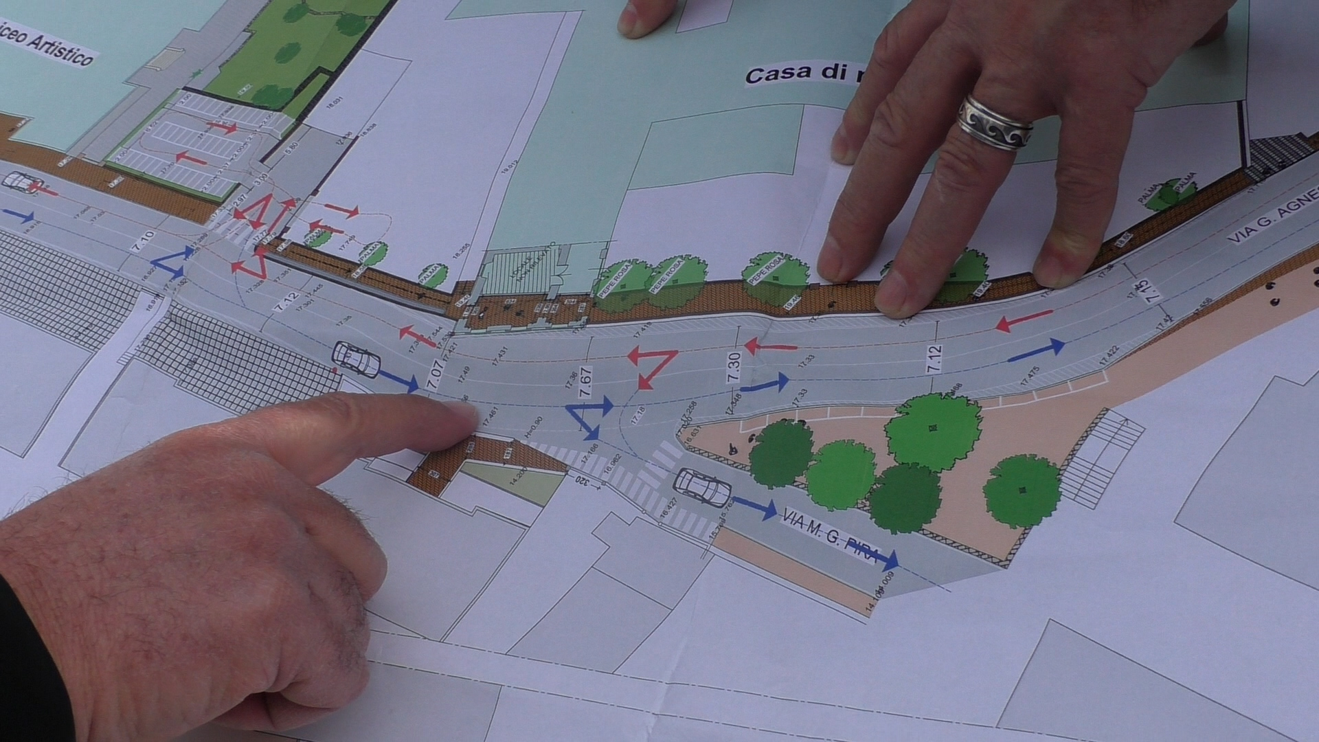 Il primo cittadino ha spiegato che l’intervento nasce dall’esigenza di mettere insieme più obiettivi: la riqualificazione del polo scolastico – che comprende istituti professionali, scuole elementari, asilo nido, liceo classico e scientifico – inserito in un complesso storico di pregio, e la necessità di migliorare la viabilità del quartiere.