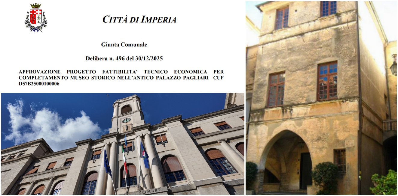 È stato approvato dalla Giunta comunale di Imperia il progetto di fattibilità tecnico-economica per il completamento del Museo Storico nell’antico Palazzo Pagliari, nel cuore di Borgo Parasio. La delibera, n. 498 del 30 dicembre 2025, è stata votata all’unanimità durante la seduta presieduta dal sindaco Claudio Scajola.