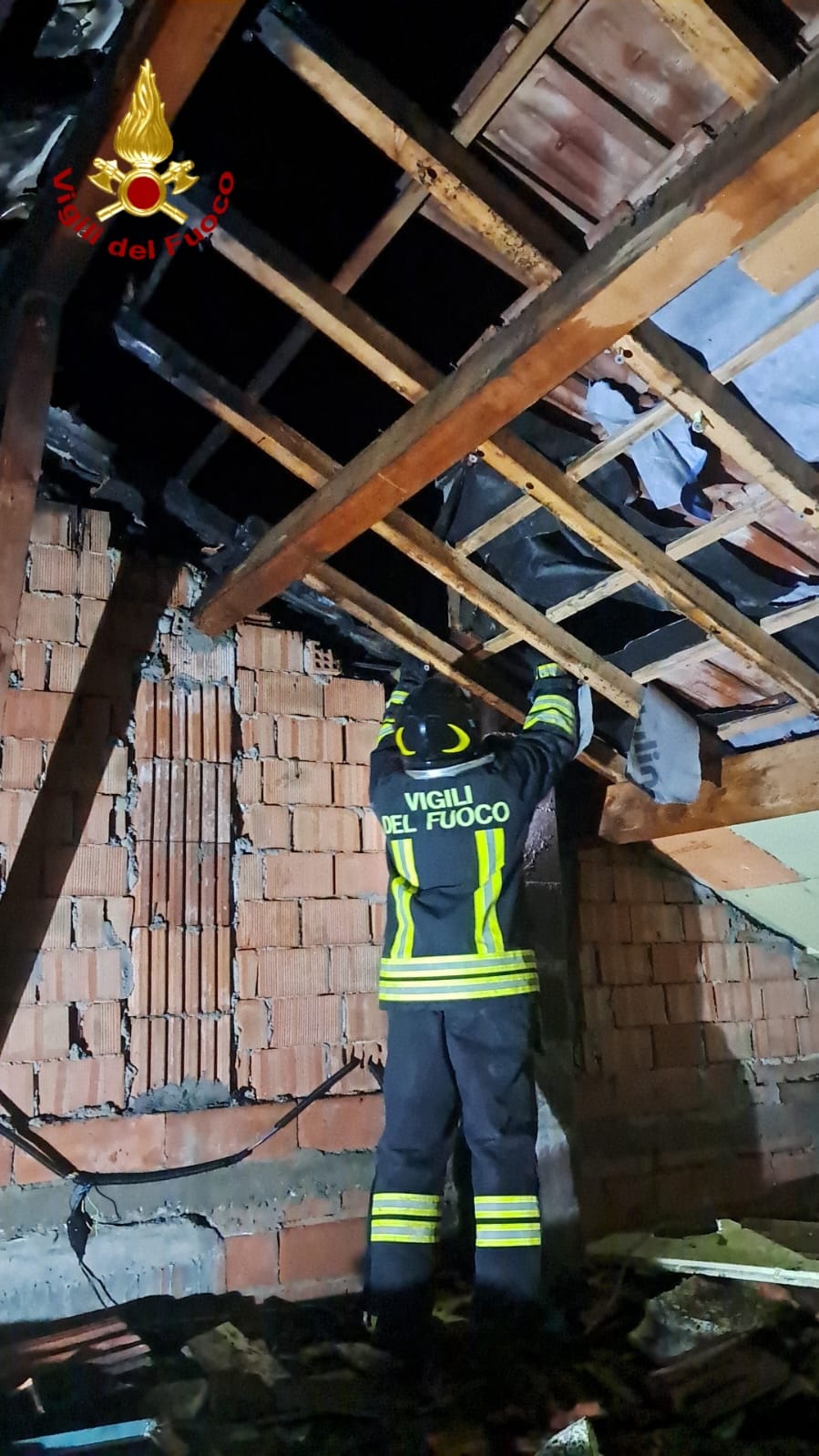 Il rogo aveva già interessato le travi del tetto, estendendosi anche a parte del piano mansardato della villetta, composta da due piani, e al tetto dell’appartamento adiacente. Presente sul posto anche il funzionario dei Vigili del Fuoco di guardia, per il coordinamento delle operazioni.
