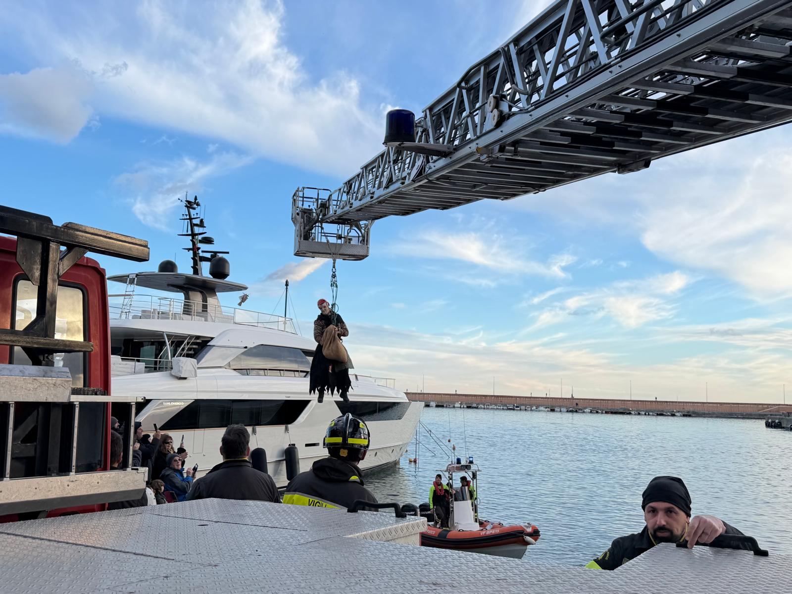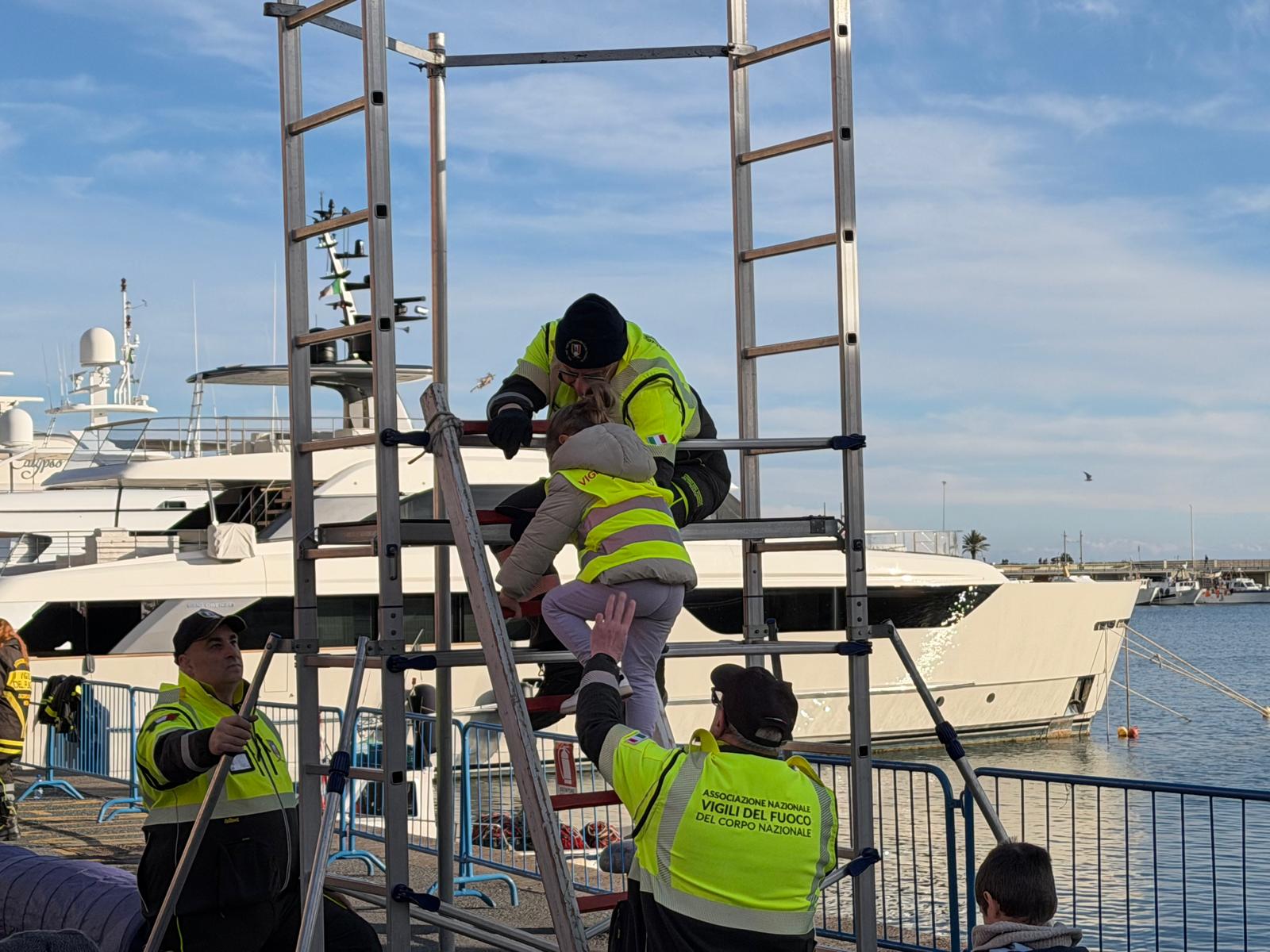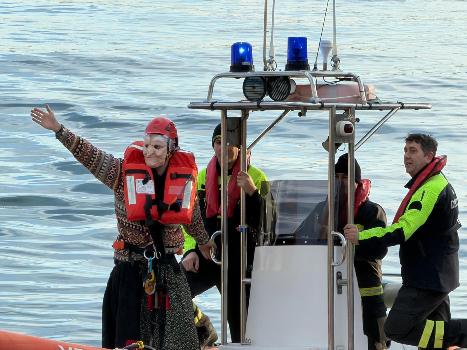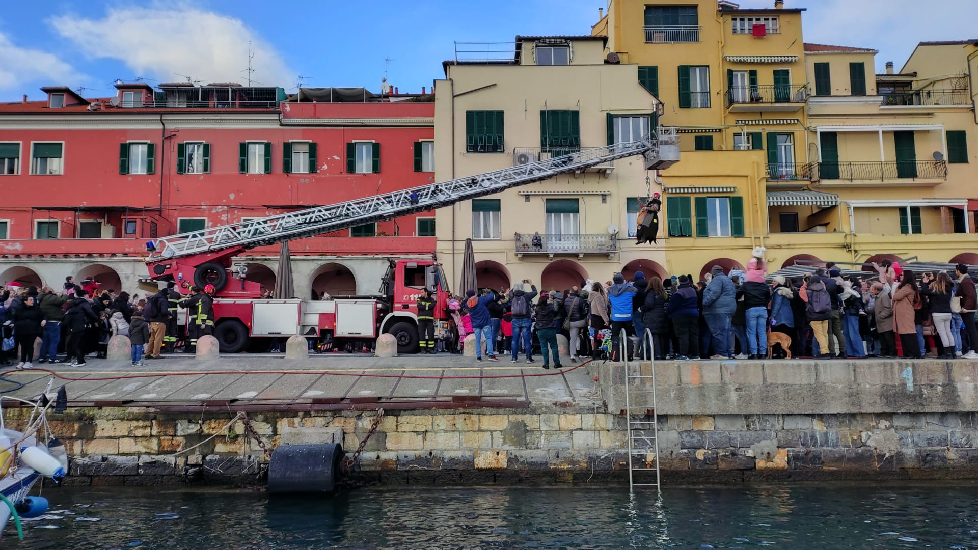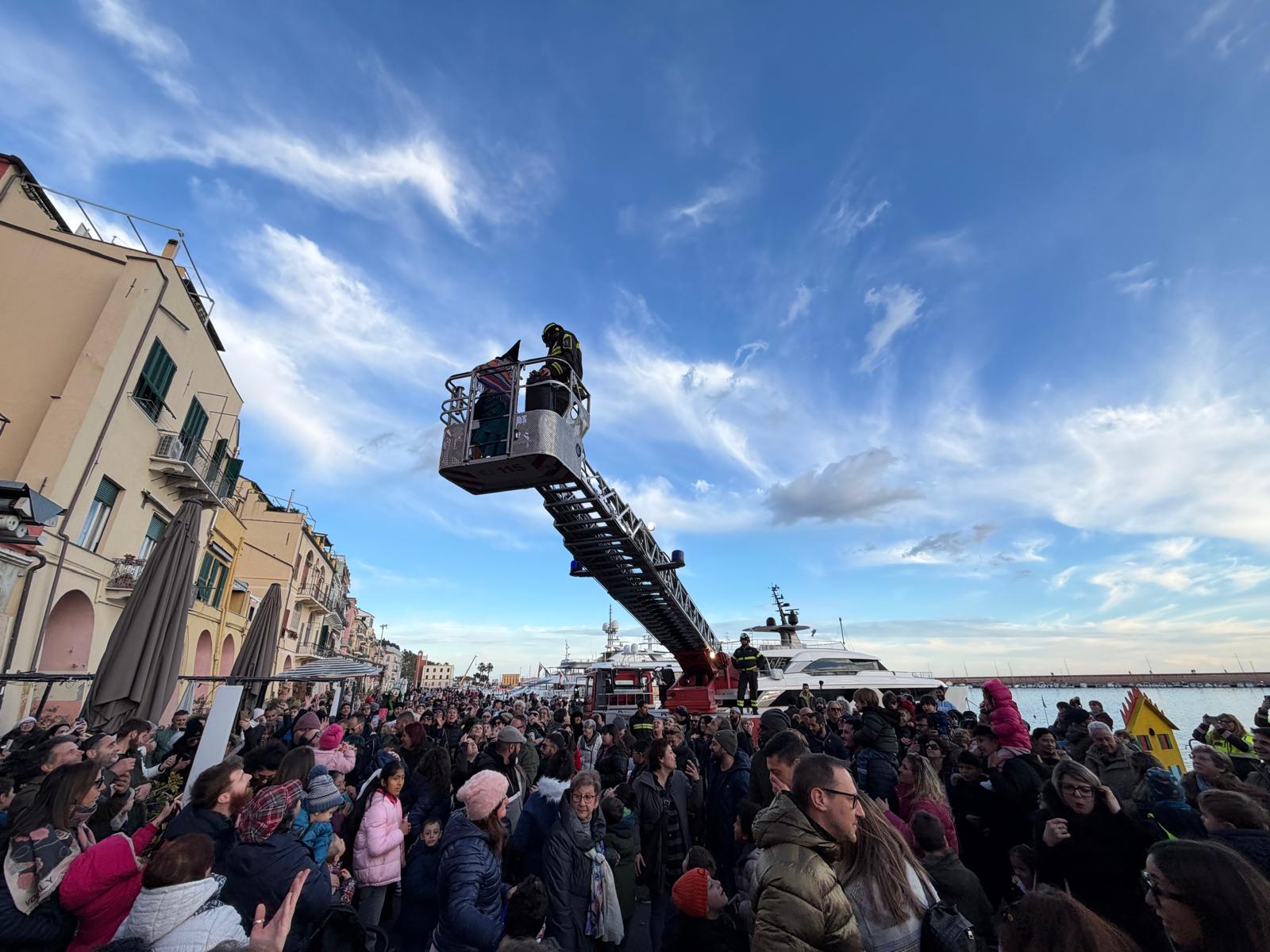 La Befana è giunta dal mare a bordo di un gommone dei Vigili del Fuoco e, una volta raggiunta la riva, è stata recuperata con l’autoscala. Dall’alto ha distribuito caramelle a tutti i bambini presenti, regalando un pomeriggio di gioia e divertimento.
