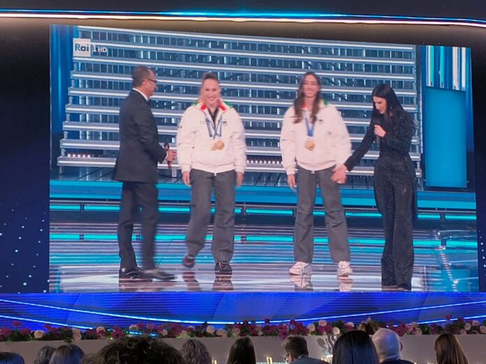Momento dedicato allo sport sul palco, con l’omaggio agli atleti protagonisti delle Olimpiadi Invernali di Milano-Cortina. Francesca Lollobrigida e Lisa Vittozzi, rispettivamente due ori nel pattinaggio di velocità e oro nel biathlon, ha condiviso l’emozione più intensa vissuta durante la manifestazione.