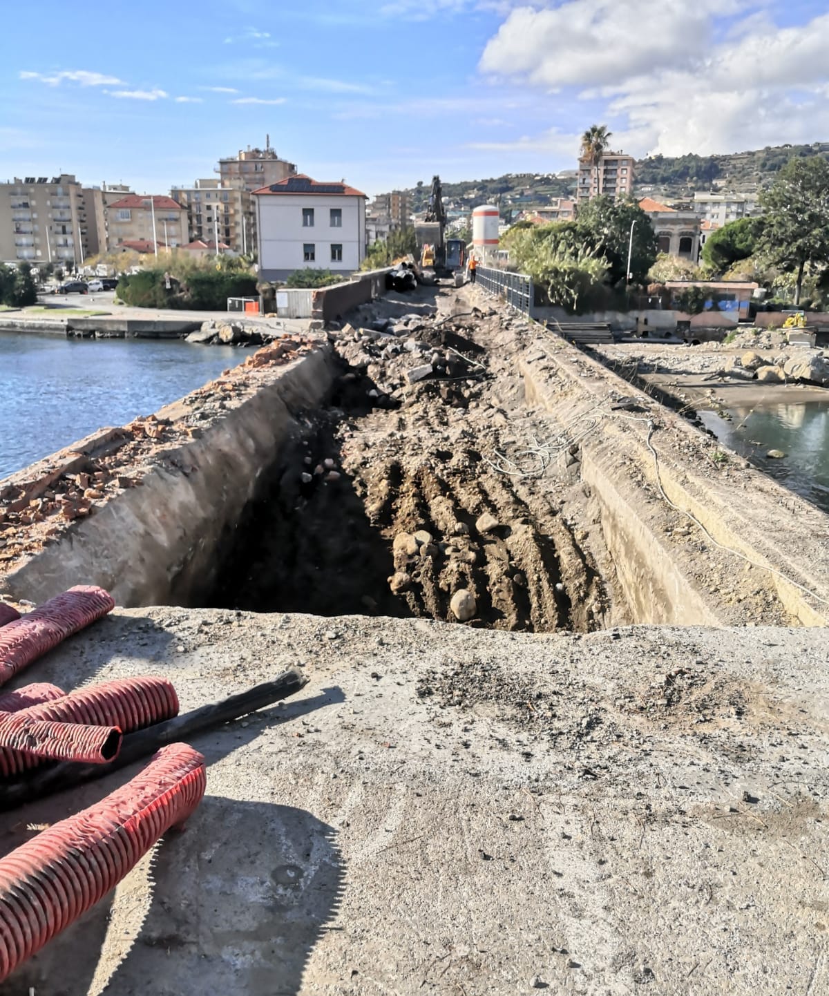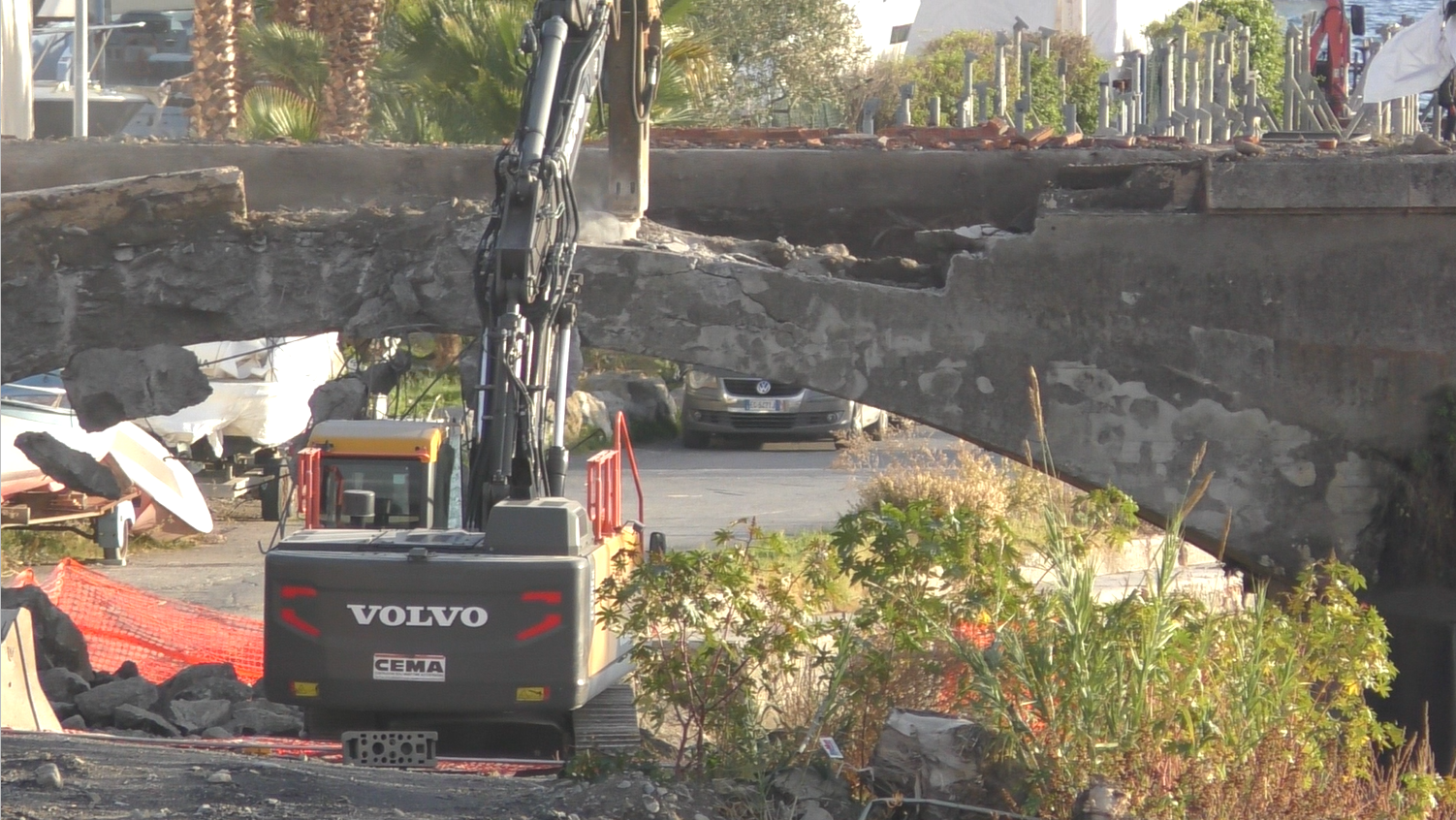 L’intervento, annunciato da mesi, segna l’avvio concreto dei lavori per la sostituzione della vecchia struttura nell’ambito del più ampio piano di messa in sicurezza della foce del torrente.