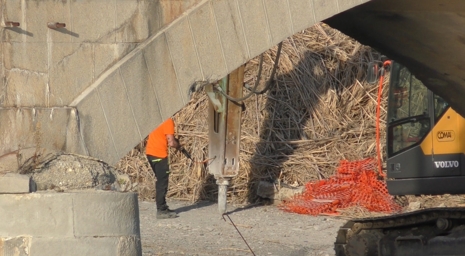 Nelle scorse settimane è stato concluso il riposizionamento dell’allaccio fognario e avviata la rimozione dell’asfalto sulla struttura. Oggi, con la rimozione dei parapetti laterali in sponda sinistra, sono iniziate le operazioni che consentiranno nei prossimi mesi di realizzare del nuovo ponte a campata unica, in modo da eliminare le attuali pile in alveo e garantire il corretto deflusso dell’acqua in caso di piena. Contestualmente è in corso la predisposizione della palificazione che costituirà, una volta definitiva, la base di appoggio della nuova struttura.