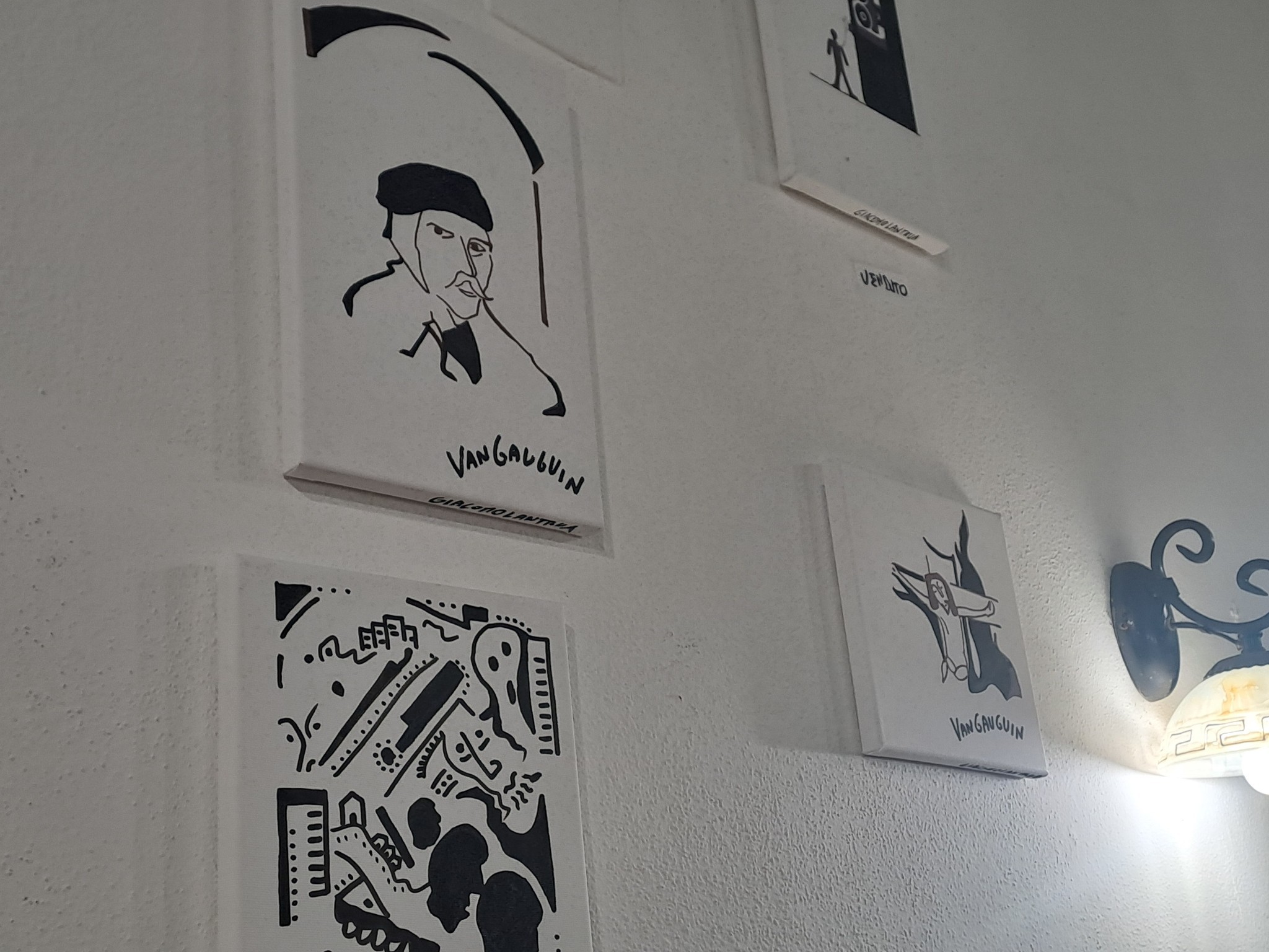 Cristian e Giulia, titolari del “Caffè della Posta”, si dicono entusiasti della potenza creativa delle opere in esposizione. Alcuni quadri sono già stati venduti, mentre altri attendono di essere ammirati dai visitatori.