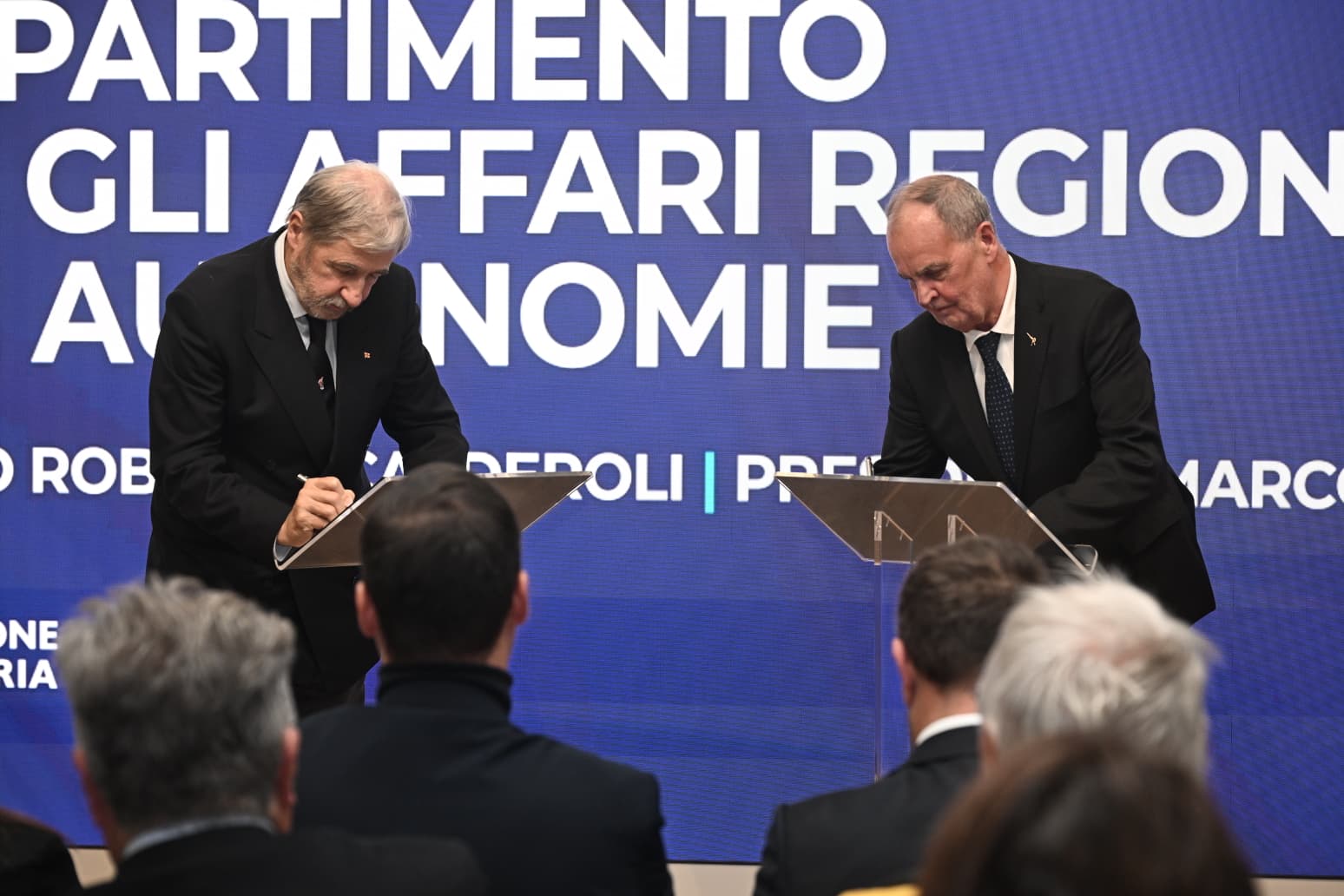Sorride al momento della firma il ministro Roberto Calderoli, che sottolinea l’opportunità di questo percorso a beneficio di tutto il Paese: “Sono convinto che, senza ideologie o pregiudizi politici, anche altre Regioni si faranno avanti. L’autonomia non toglie nulla a nessuno ma consente di agire con maggiore libertà rispetto ai vincoli che impone lo Stato centrale, e questo va tutto a vantaggio dei cittadini perché la singola Regione conosce meglio i bisogni e saprà dare le migliori risposte concrete. Con queste pre-intese siamo passati allo step successivo, dopo l’approvazione della legge 86/2024, e proseguiremo il cammino insieme ai governatori e con il via libera della stessa premier Meloni, che ha espresso la propria soddisfazione per i passi avanti. Abbiamo davanti un anno e mezzo di legislatura, io son convinto che i tempi ci siano per raggiungere questo risultato”.