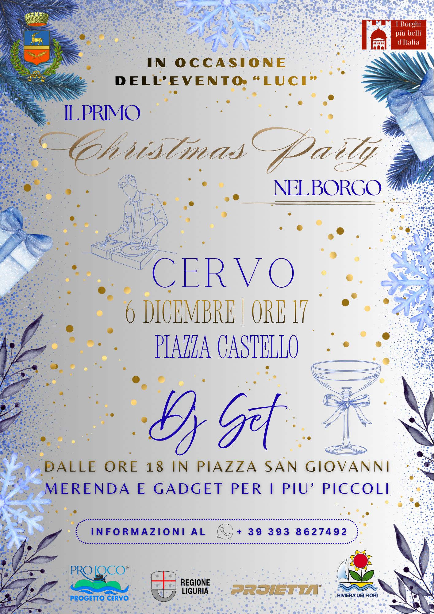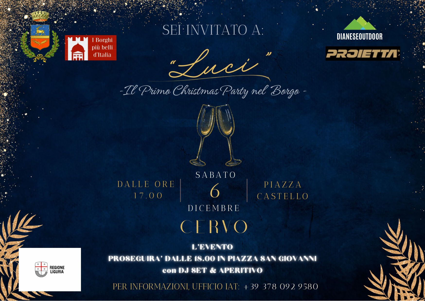 L’accensione inaugurale di ‘Luci’ sarà accompagnata dal primo ‘Christmas Party nel Borgo’, organizzato dal Comune di Cervo e dalla Pro Loco Progetto Cervo. La festa si sposterà dalle 17 in piazza Castello alle 18 in piazza San Giovanni, con musica, brindisi e aperitivi all’aperto animati da un dj set.