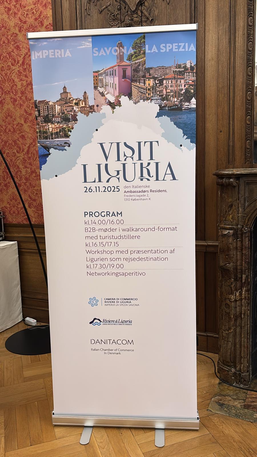 Accolta dall’ambasciatrice italiana a Copenaghen, Stefania Rosini, una delegazione di imprese del turismo guidata dall’Azienda Speciale Riviere di Liguria ha iniziato questa mattina una serie di incontri d’affari con operatori danesi interessati alle destinazioni turistiche liguri. La giornata di b2b si chiama “Visit Liguria” ed è organizzata dall’Azienda Speciale insieme a Danitacom, la Camera di Commercio italiana in Danimarca.