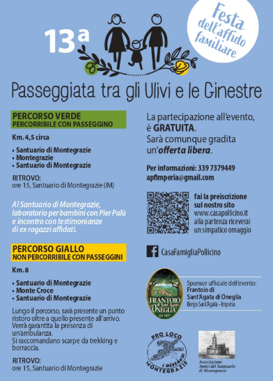 Sabato 7 giugno 2025, torna la tradizionale “Passeggiata tra gli ulivi e le ginestre”, giunta alla sua 13esima edizione, in occasione della festa dell’affido familiare promossa dalla Casa Famiglia Pollicino.